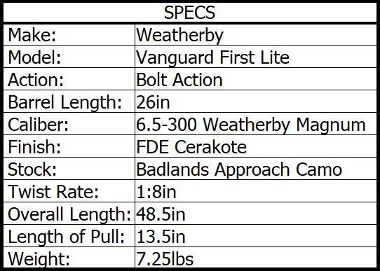 Lot 47 WEATHERBY VGD FIRST LITE 6.5-300 WBY MAG FDE w/ BRAKE 26in 3rnd