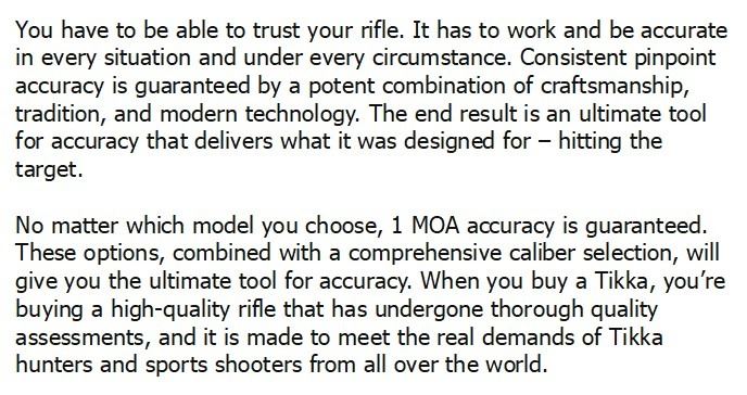 Tikka developed this ultimate target rifle in cooperation with the Finnish Hunting and Sporting Association. This rifle is built to be capable of performing at the highest level of competition while simultaneously functioning as a hunting rifle.