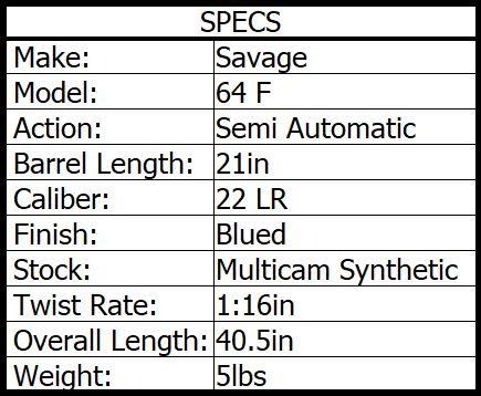 Lot 129 SAVAGE 64F 22LR BLUED/SYN MULTICAM 21in 10rnd