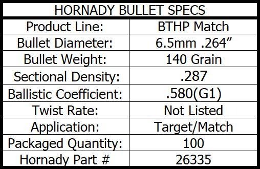 Lot 135 2 BOXES - HORNADY BTHP 6.5mm .264in 140gr 100pk