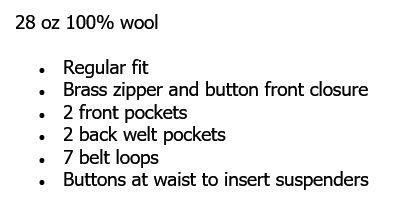 Buttons at waist to insert suspenders