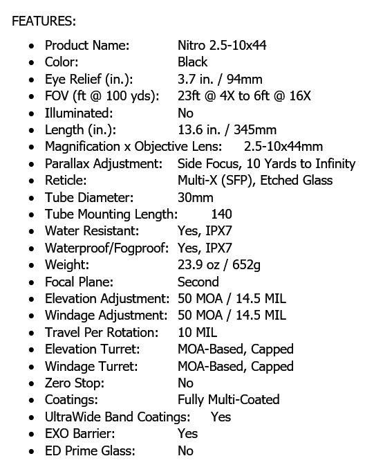 Lot 239 BUSHNELL NITRO 2.5-10x44mm Multi-X SFP RIFLESCOPE