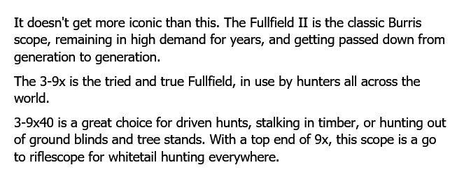 It doesn’t get more iconic than this. The Fullfield II is the classic Burris scope, remaining in high demand for years, and getting passed down from father to child. And the 3-9x size is the classic Fullfield size, in use by hunters all across the country.