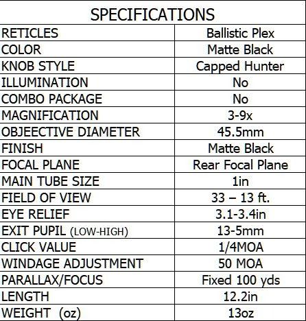 • Ballistic Plex reticle