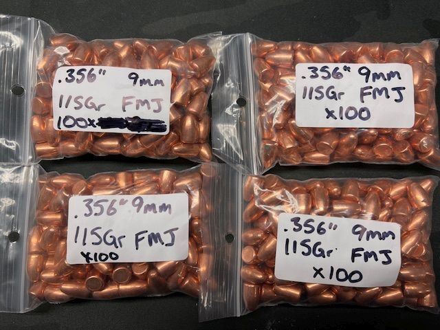 4x100 - 9mm 115gr .356in FMJ BRASS BULLETS