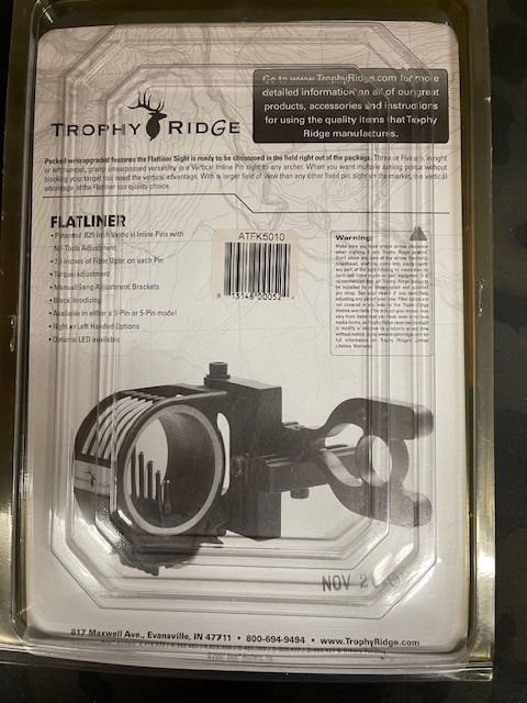 Lot 374 NEW TROPHY RIDGE FLATLINER RH 5-PIN SIGHT & TRUGLO POR-DOT FIBER OPTIC SIGHT PIN