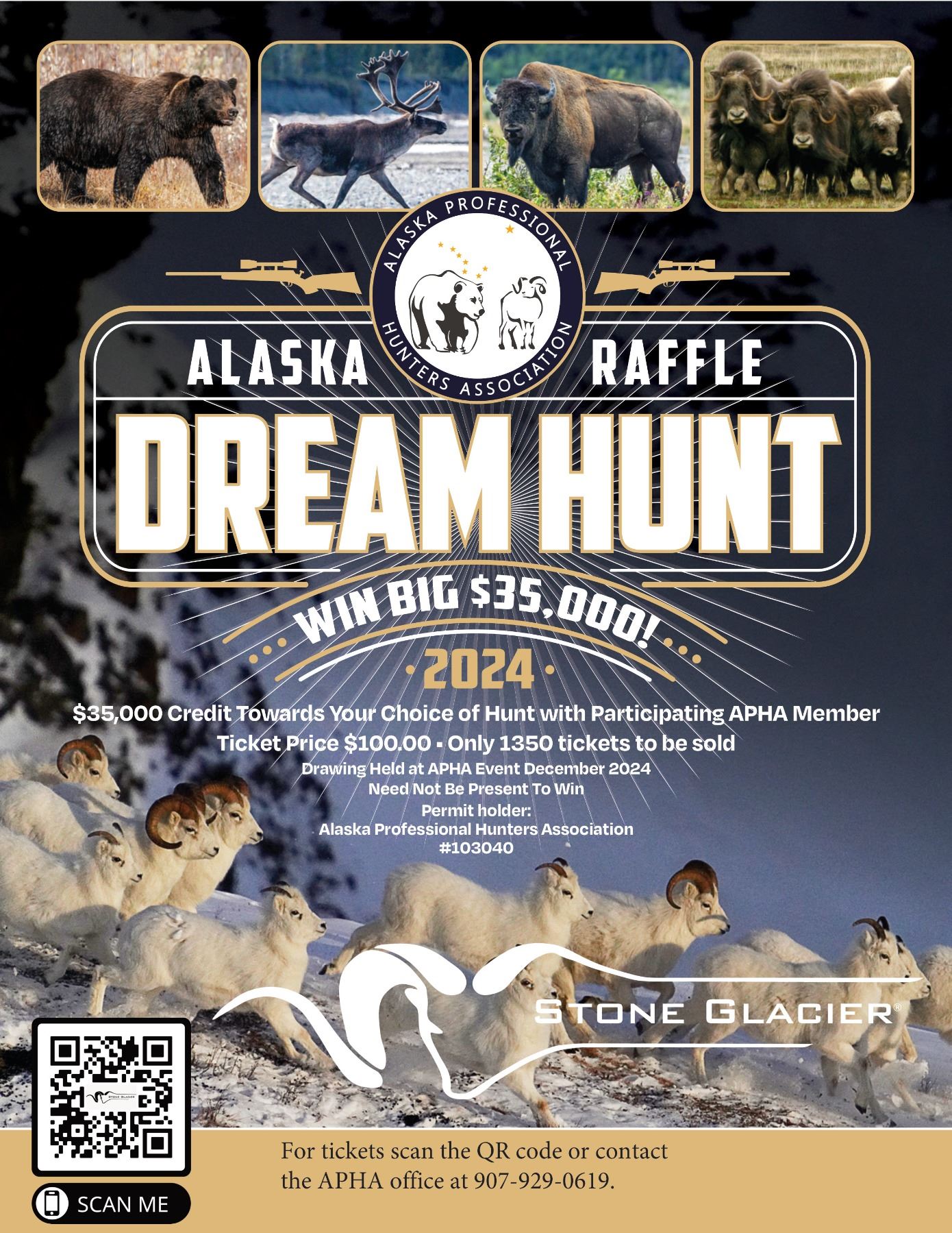 This raffle is brought to you by the Alaska Professional Hunters Association. For more information please contact the APHA office at 907-929-0619
