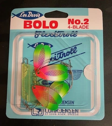 1 - LES DAVIS BOLO #2 4-BLADE FLEX-I-TROLL GREEN RAINBOW FISHSCALE