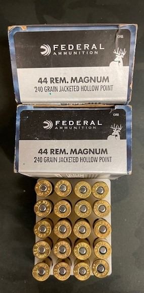 - 40 rounds (2 boxes) FEDERAL 44 REM MAGNUM 240gr JHP