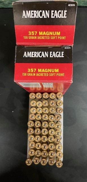 - 100 rounds (2 boxes) FEDERAL AMERICAN EAGLE 357 MAGNUM 158gr JSP