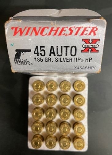 - 20 rounds (1 box) WINCHESTER SUPER X 45 AUTO 185gr SILVERTIP HP