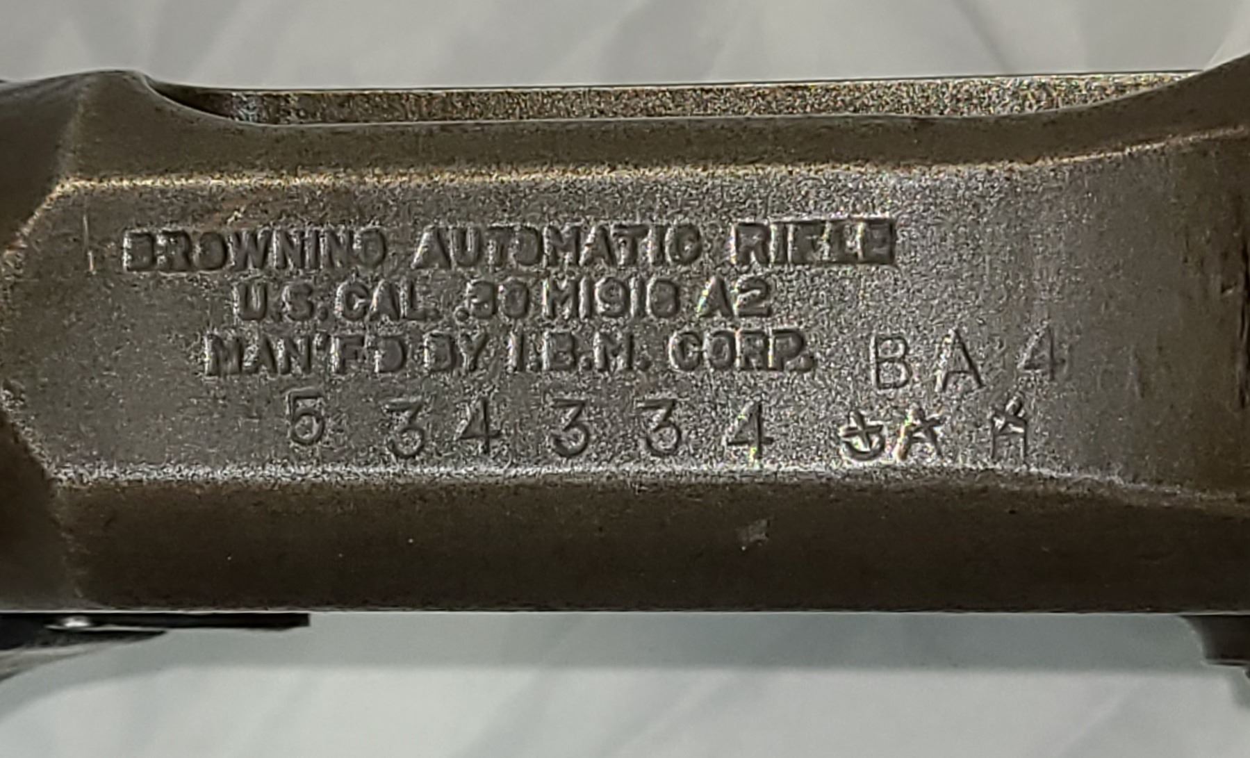 Has Browning Automatic Rifle US Cal .30 M1918 A2 Man'fd by IBM Corp stamped