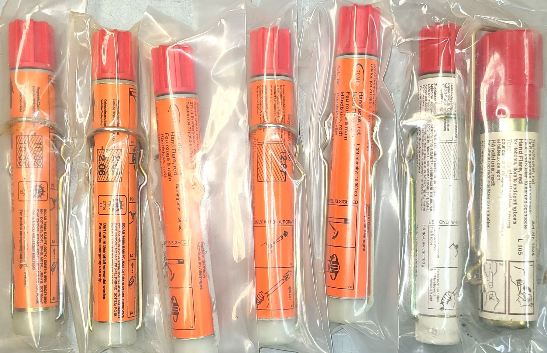 Lot 934 Hand Flares - 6 Comet Red Hand Flares