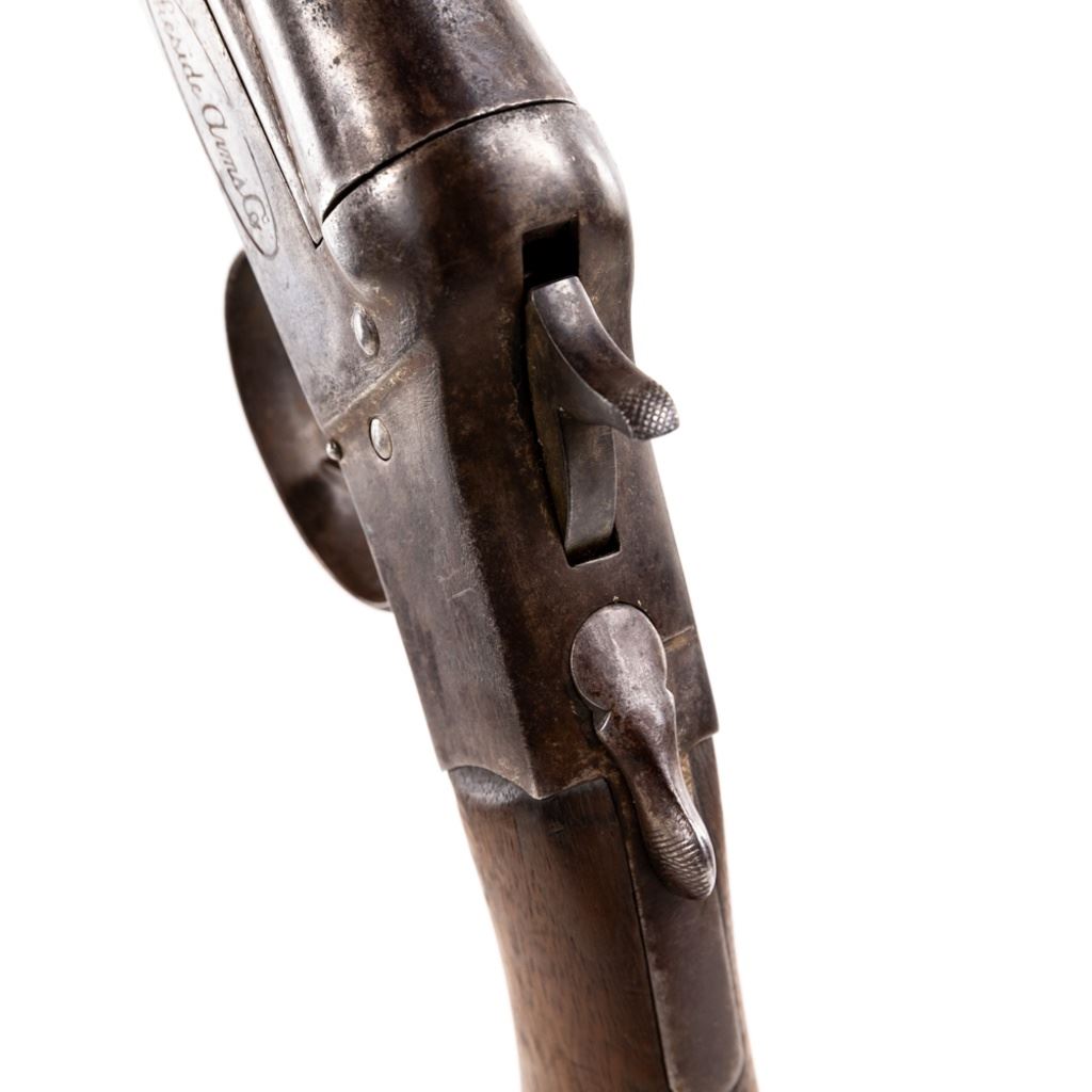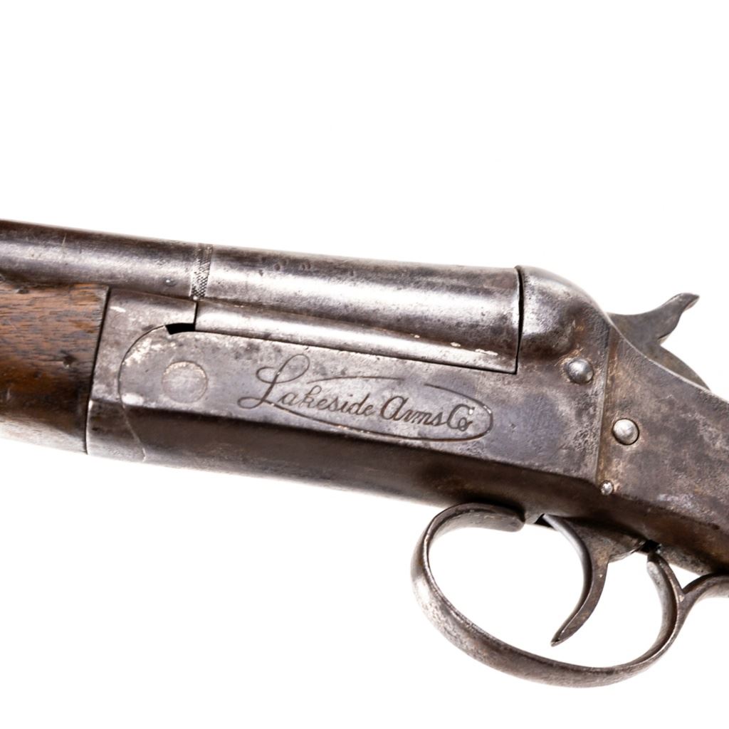Lakeside Arms Single 12g 20" Shotgun in fair condition with wear and oxidation. Lock up is firm. C&R Eligible S/N:W0345 THIS WAS A MOVIE PROP GUN USED IN MOVIES AND TELEVISION SHOWS SHOT HERE IN CHICAGO. IT SHOULD BE CHECKED BY A COMPETENT GUNSMITH TO CHECK FOR SHOOTABILITY BEFORE FIRING. BARRELS MAY HAVE BEEN MODIFIED TO ALSO SHOOT BLANKS.