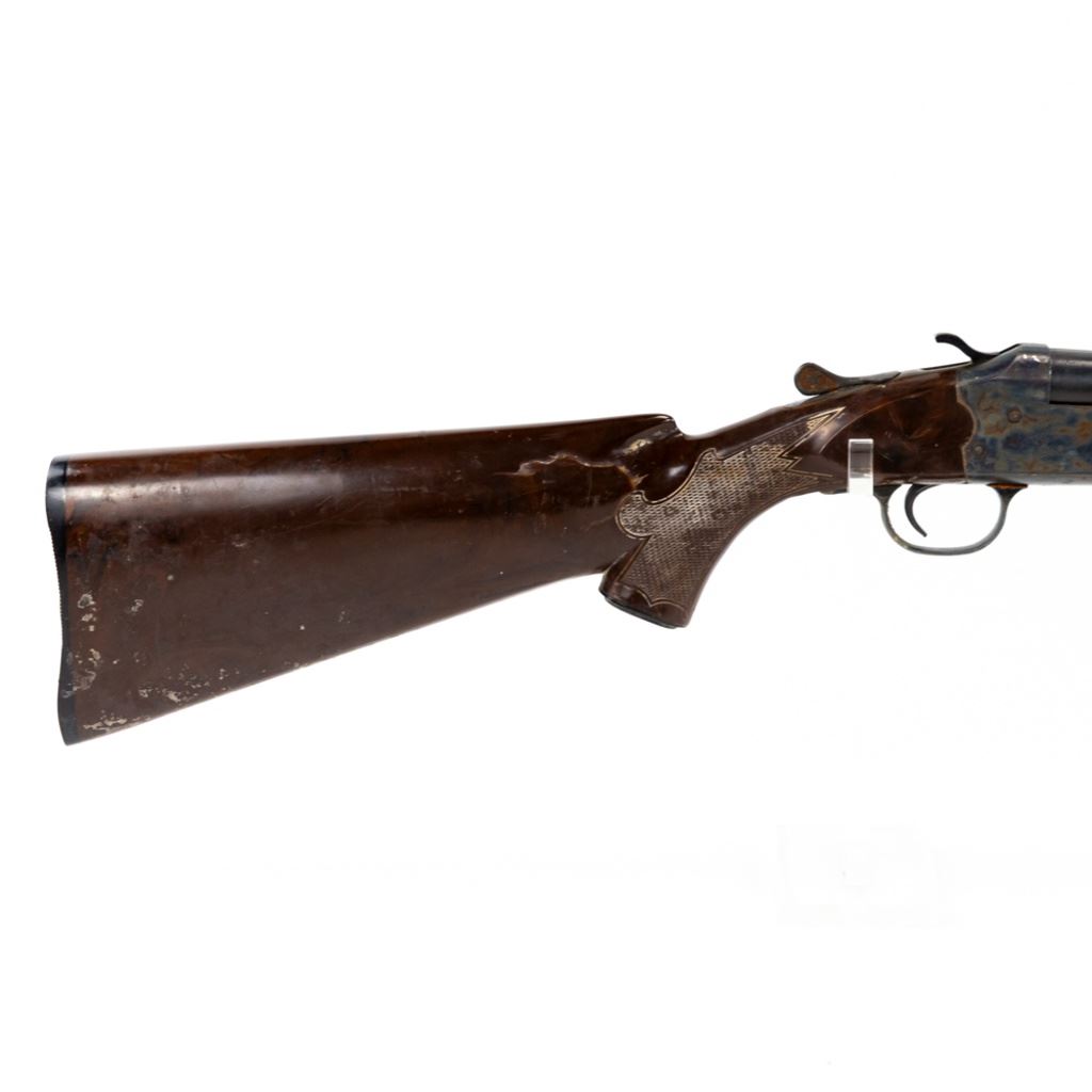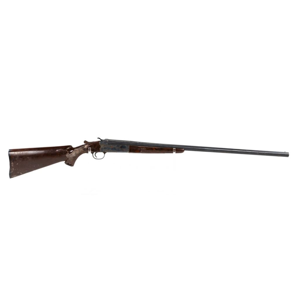 Stevens 94B 12g Shotgun in fair condition with wear and oxidation C&R Eligible S/N:nsn THIS WAS A MOVIE PROP GUN USED IN MOVIES AND TELEVISION SHOWS SHOT HERE IN CHICAGO. IT SHOULD BE CHECKED BY A COMPETENT GUNSMITH TO CHECK FOR SHOOTABILITY BEFORE FIRING. BARRELS MAY HAVE BEEN MODIFIED TO ALSO SHOOT BLANKS.