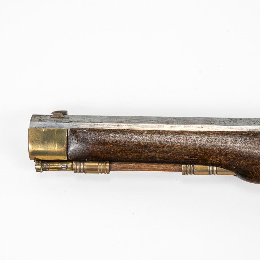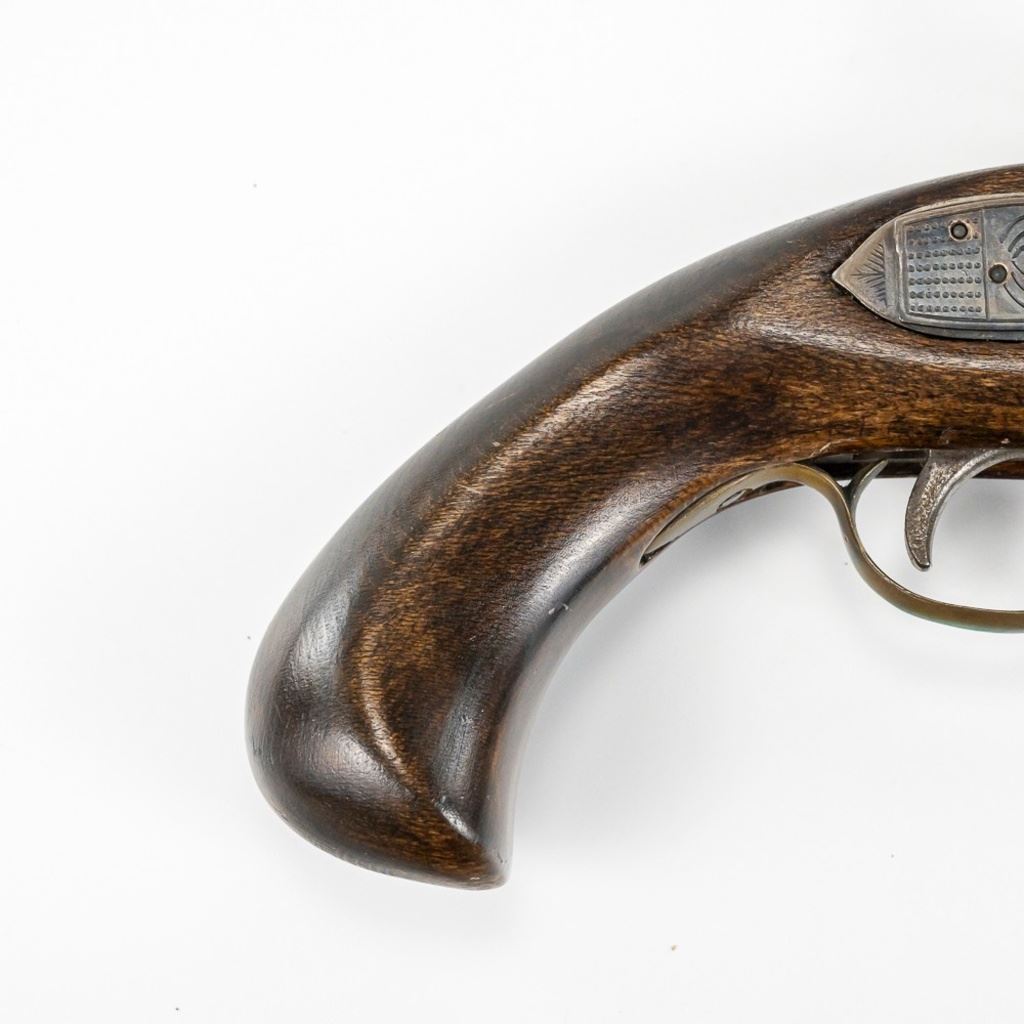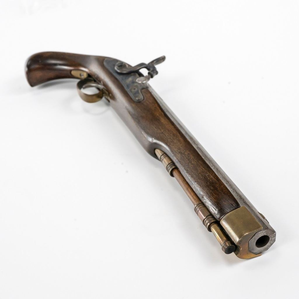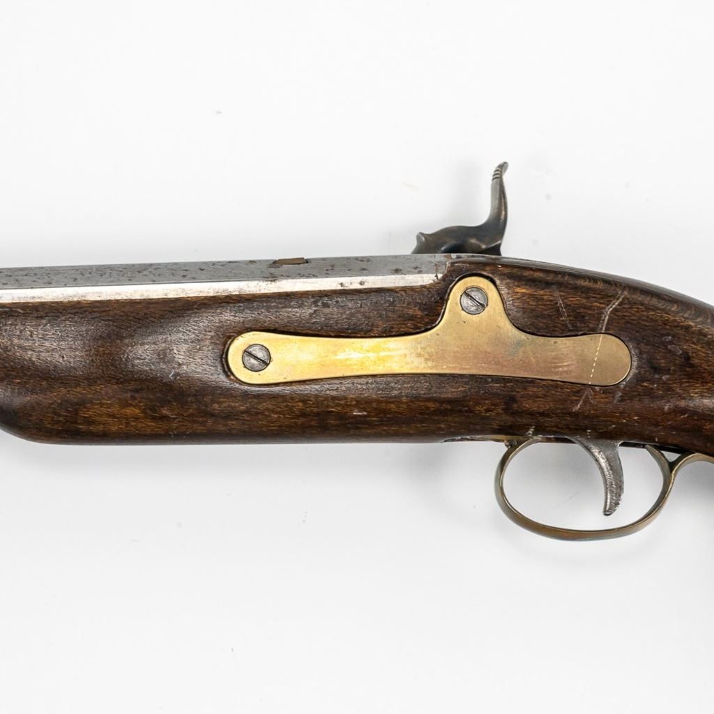 Unknown MFG Cap & Ball .45 10" Pistol in very good condition with handling wear and light oxidation in the bore. The barrel is in the white with speckles. C&R Eligible S/N:077955
