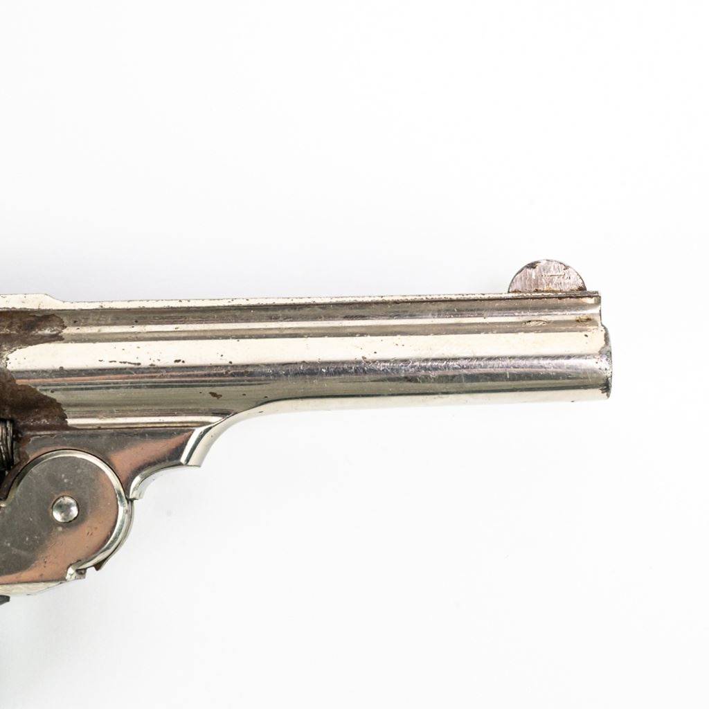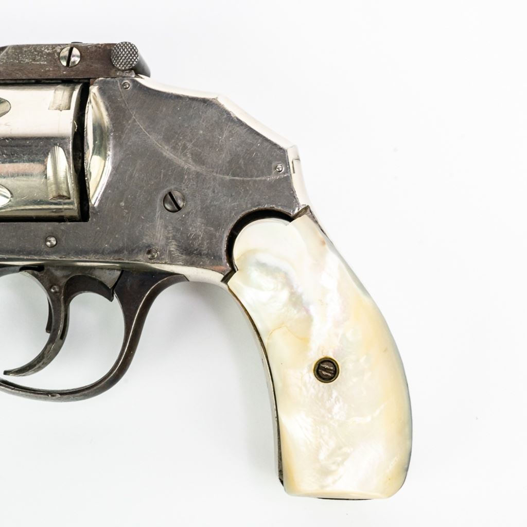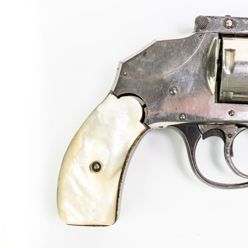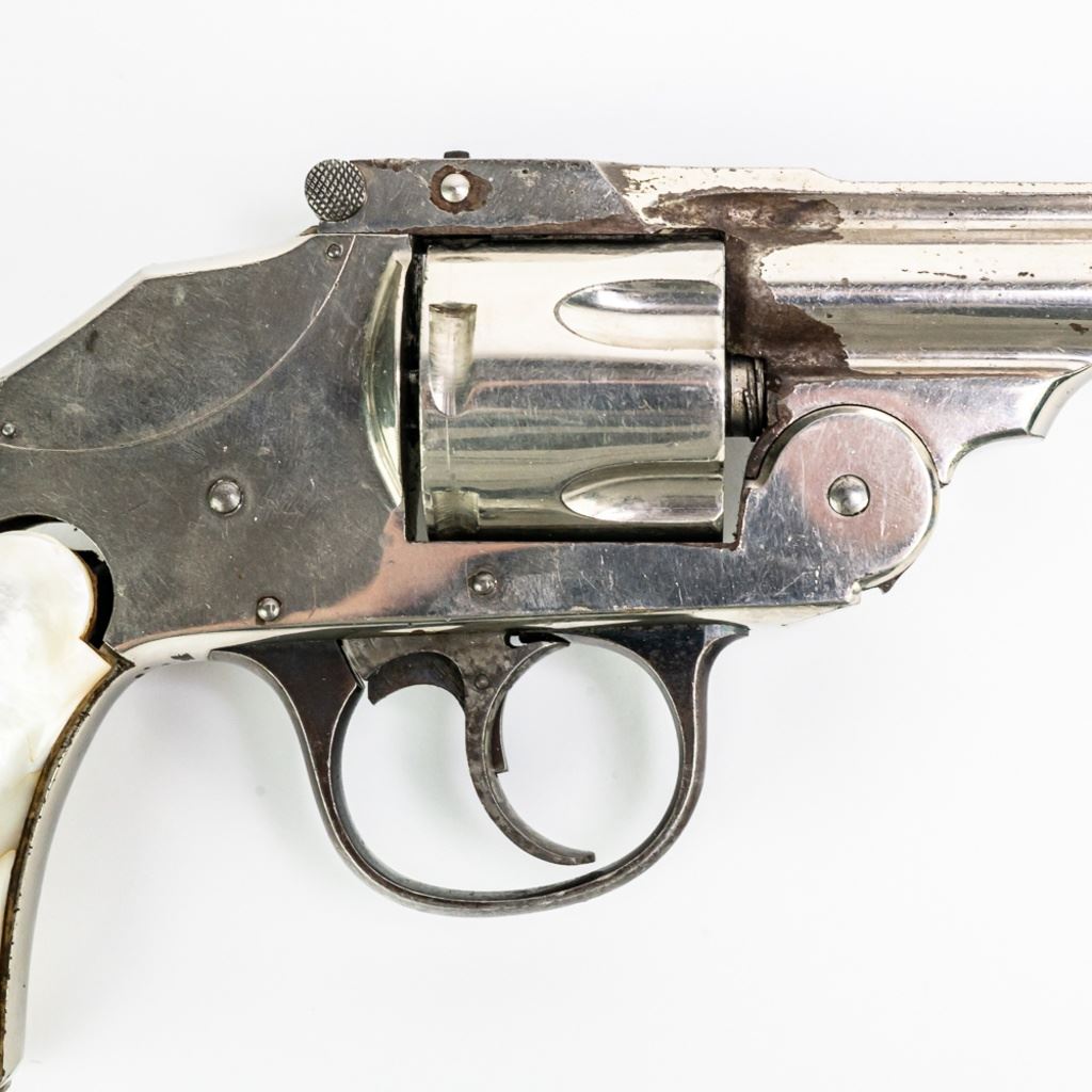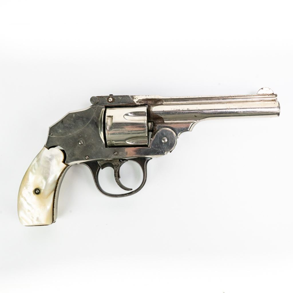 Iver Johnson Top Break .38 Hammerless Revolver in good condition with some wear and oxidation. C&R Eligible S/N:26652 THIS WAS A MOVIE PROP GUN USED IN MOVIES AND TELEVISION SHOWS SHOT HERE IN CHICAGO. IT SHOULD BE CHECKED BY A COMPETENT GUNSMITH TO CHECK FOR SHOOTABILITY BEFORE FIRING. BARRELS MAY HAVE BEEN MODIFIED TO ALSO SHOOT BLANKS.
