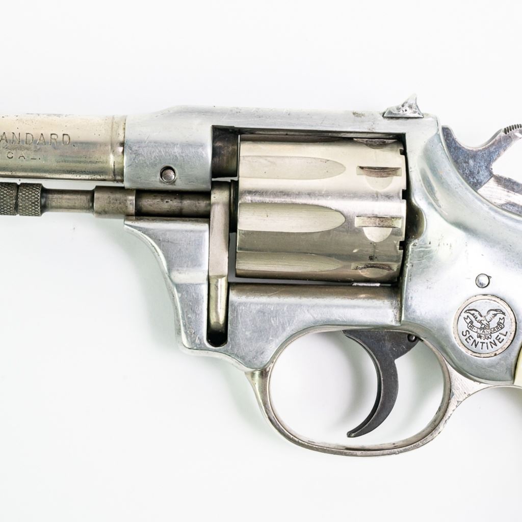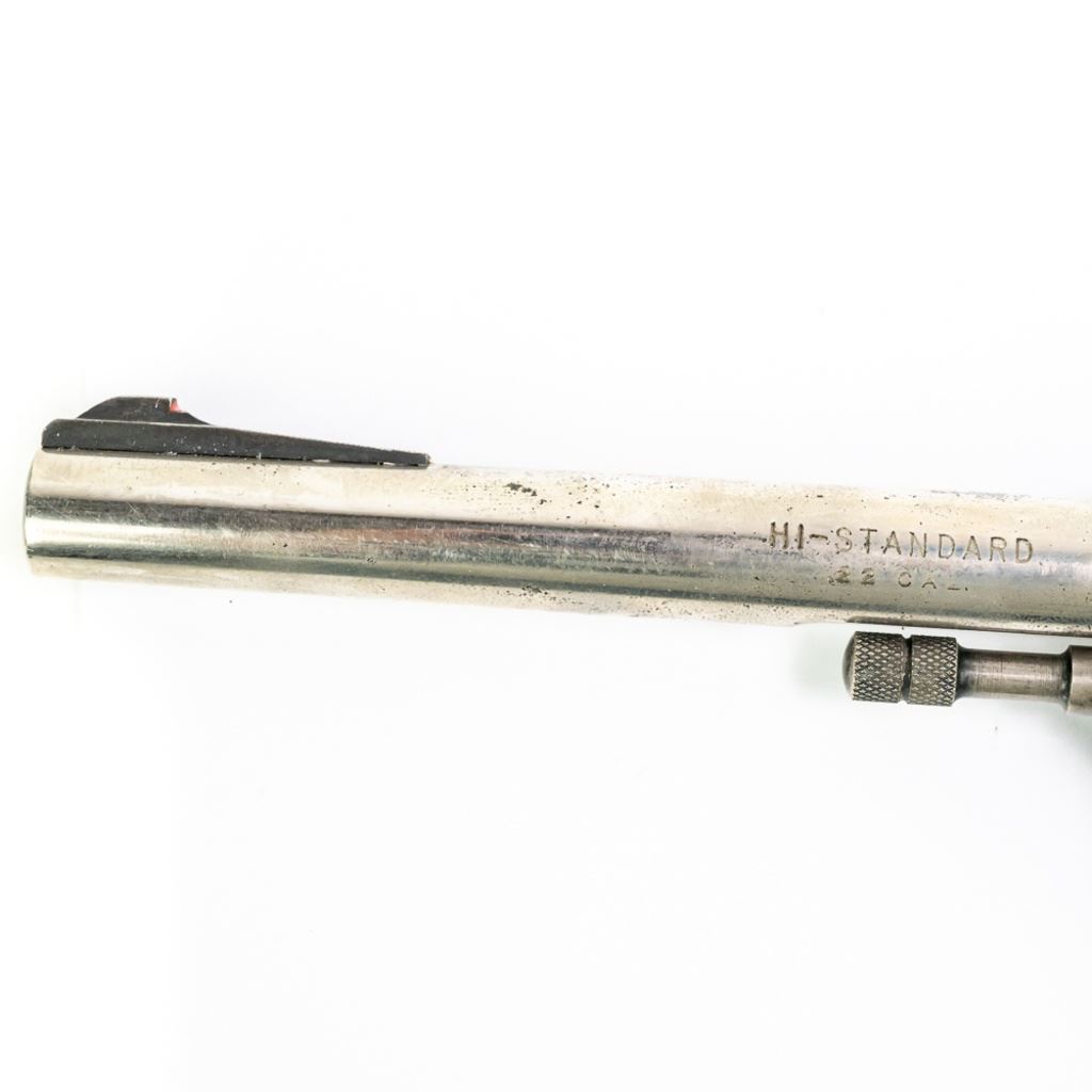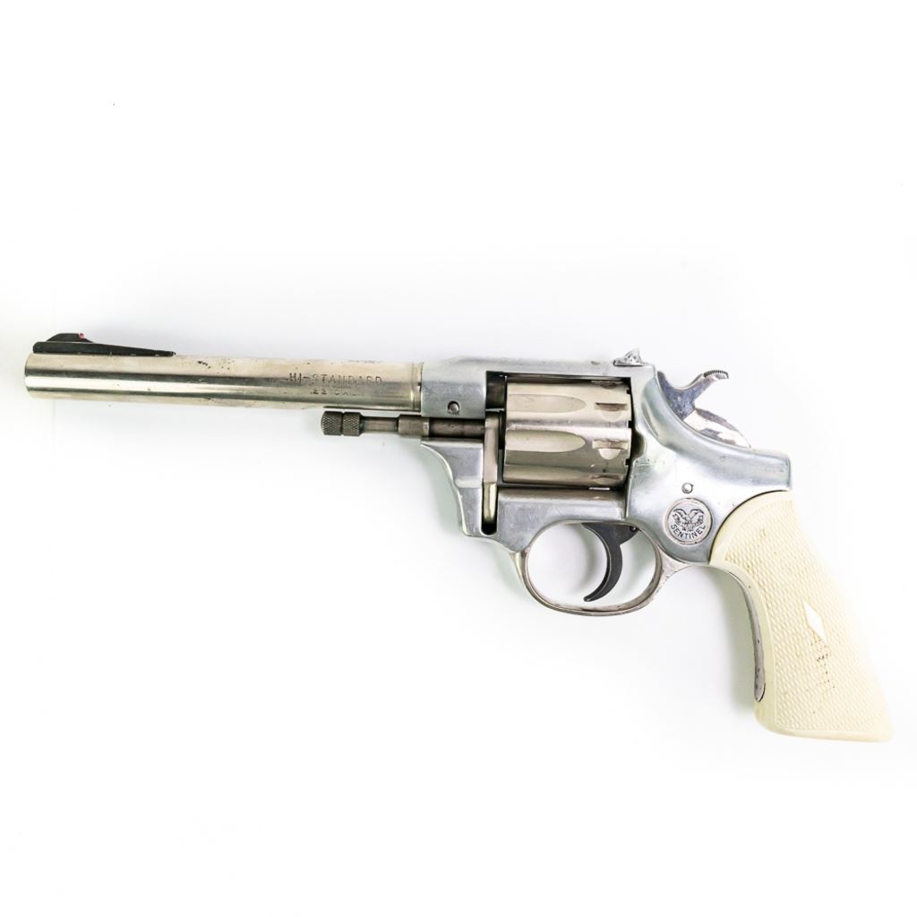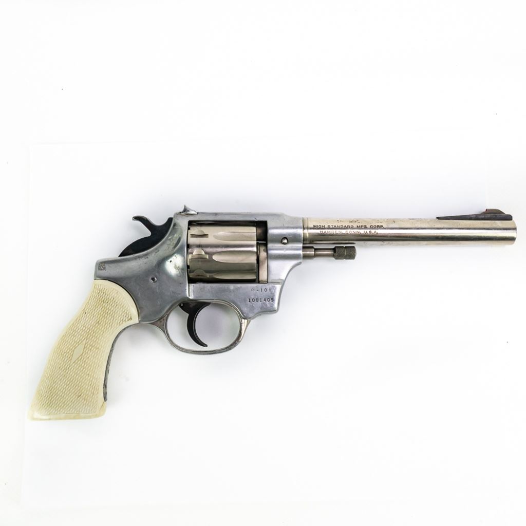 HiStandard R101 Sentinel .22lr 6" Revolver in good condition with wear. C&R Eligible S/N:1001405 THIS WAS A MOVIE PROP GUN USED IN MOVIES AND TELEVISION SHOWS SHOT HERE IN CHICAGO. IT SHOULD BE CHECKED BY A COMPETENT GUNSMITH TO CHECK FOR SHOOTABILITY BEFORE FIRING. BARRELS MAY HAVE BEEN MODIFIED TO ALSO SHOOT BLANKS.
