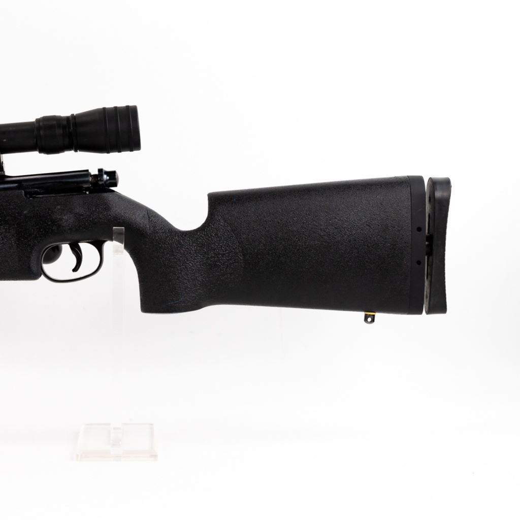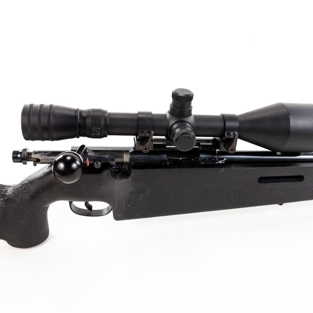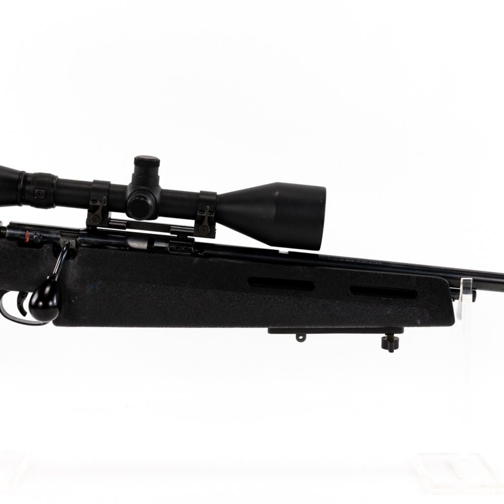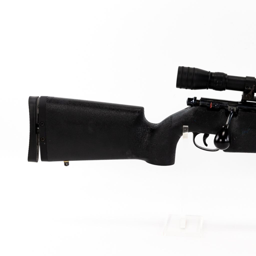CUSTOM! Marlin 783 22lr Rifle in very good condition with minor wear. Custom features include: an adjustable harmonic balancer installed on the barrel a target chassis beaded and free floated with adjustable LOP, trigger shoe, a Redfield LE-9 3-9x50 scope and an oversized bolt. S/N:19723990
