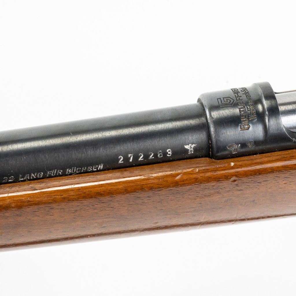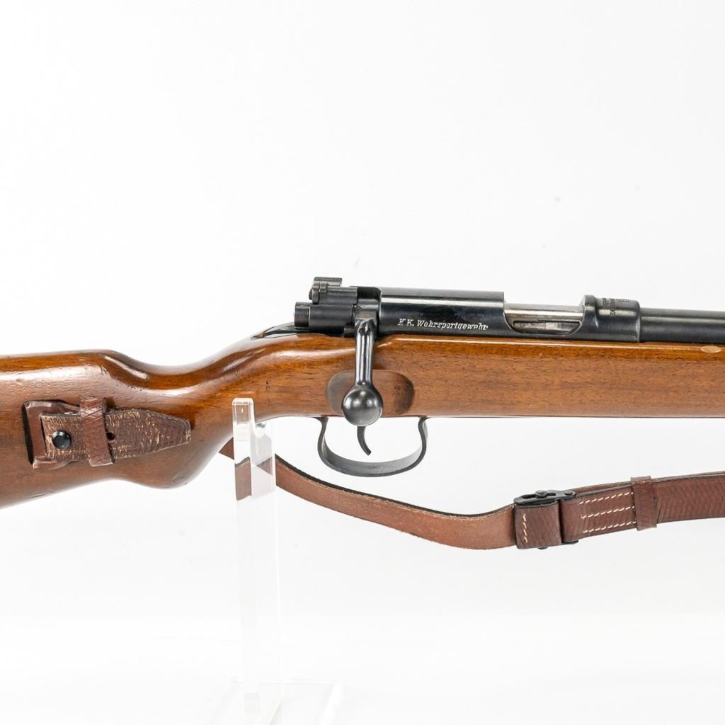 Gustloff-Werke KKW 22lr Training Rifle in very good condition with minor wear. Some nicks in the stock. The bore is sharp and bright. Stamped with German eagle Waffenamt marks. Complete with leather sling. VERY PRETTY!! C&R Eligible S/N:272283