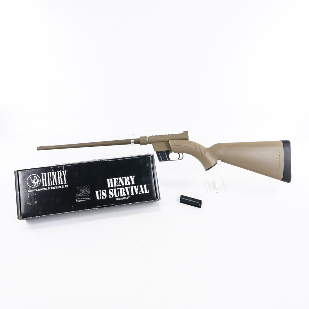 LIKE NEW! And Unusual! Henry US Survival 22lr Flat Dark Earth (color) Rifle. With original box and manuals. 2x magazines. S/N:US000642K