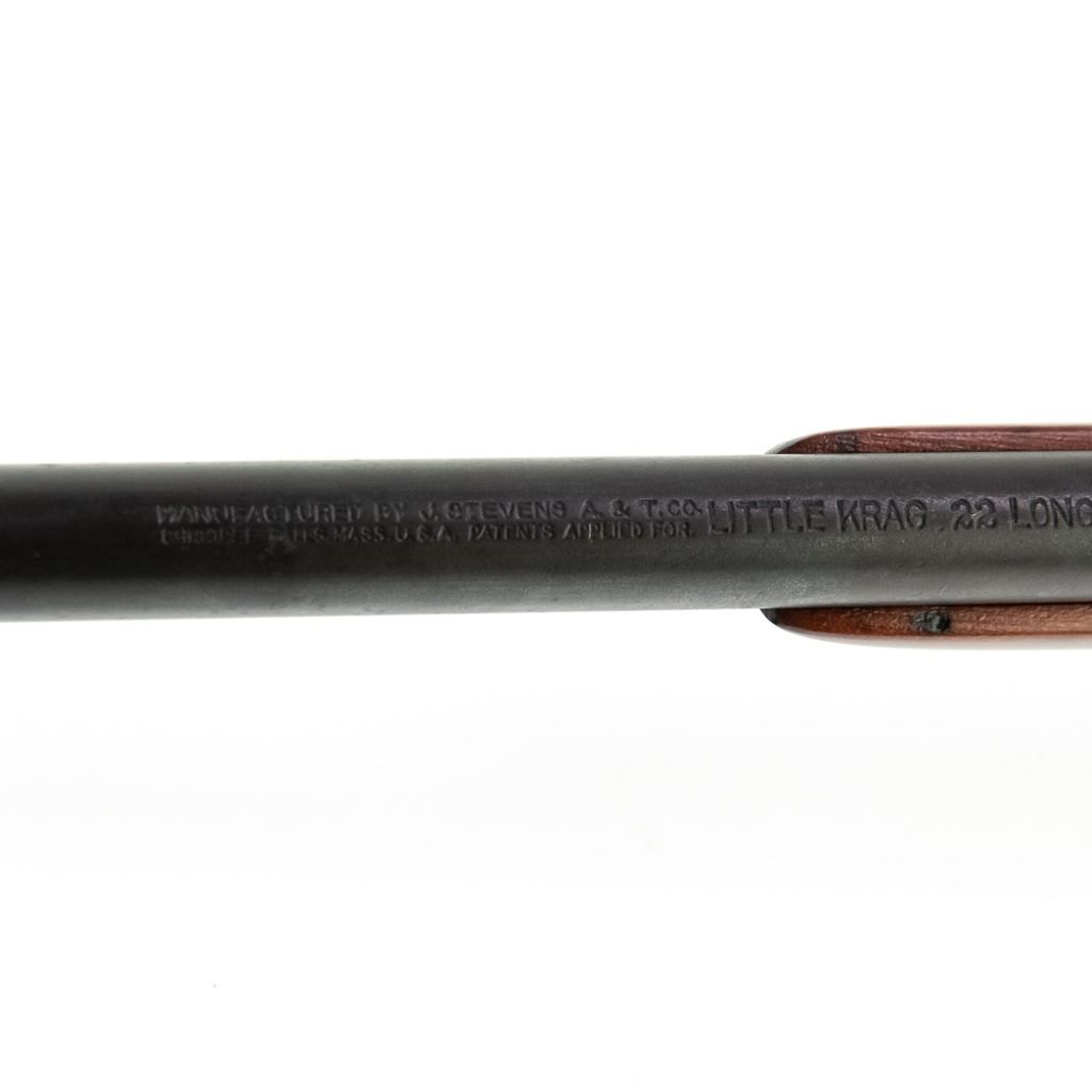 Stevens Youth "Little Krag" 22lr 20" Rifle in very good condition with some wear. The bore is frosted. Butt-plate is chipped at the toe. C&R Eligible S/N:nsn