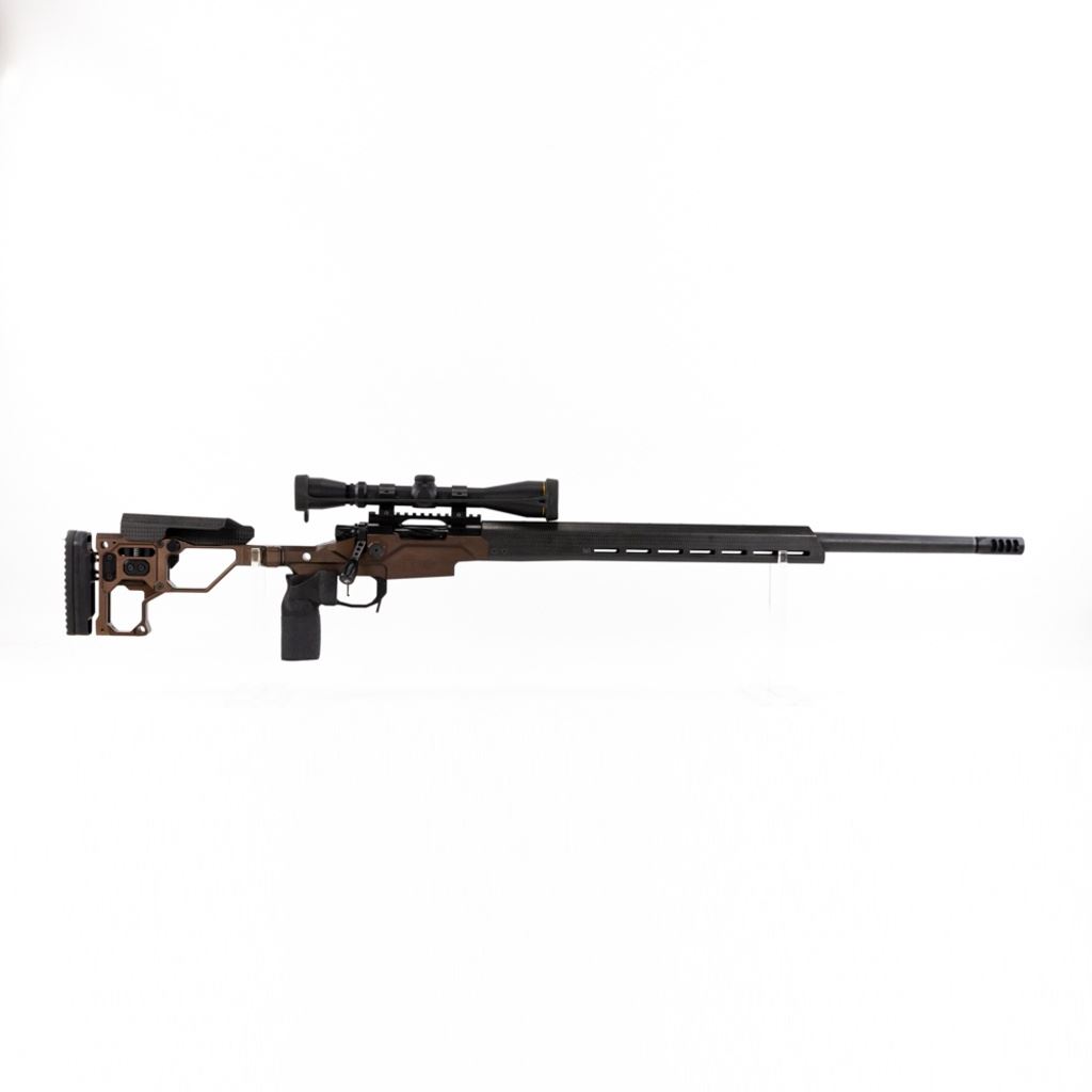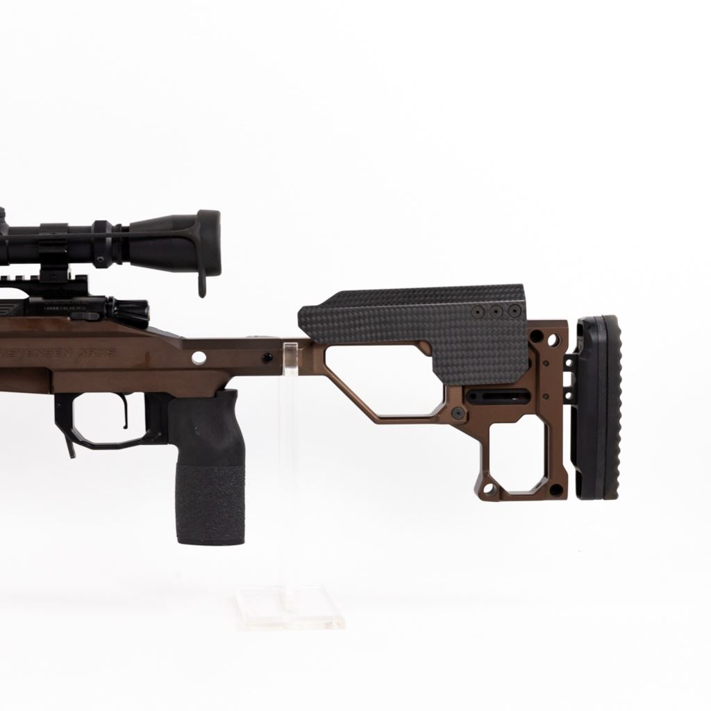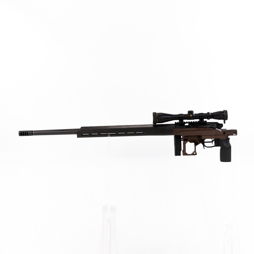 Christensen Arms 14 MPR 6.5 Creedmore Precision Sub-MOA Rifle in excellent condition with very minor wear. Carbon Fiber wrapped target barrel, Midwest Industries carbon fiber fore-end with M-Lok, carbon fiber cheek-weld, Modern Precision Rifle folding aluminum target chassis, muzzle brake, fluted lightened bolt and Leupold 3-9x40 scope. Comes with a Plano fitted hard case and 2x magazines.