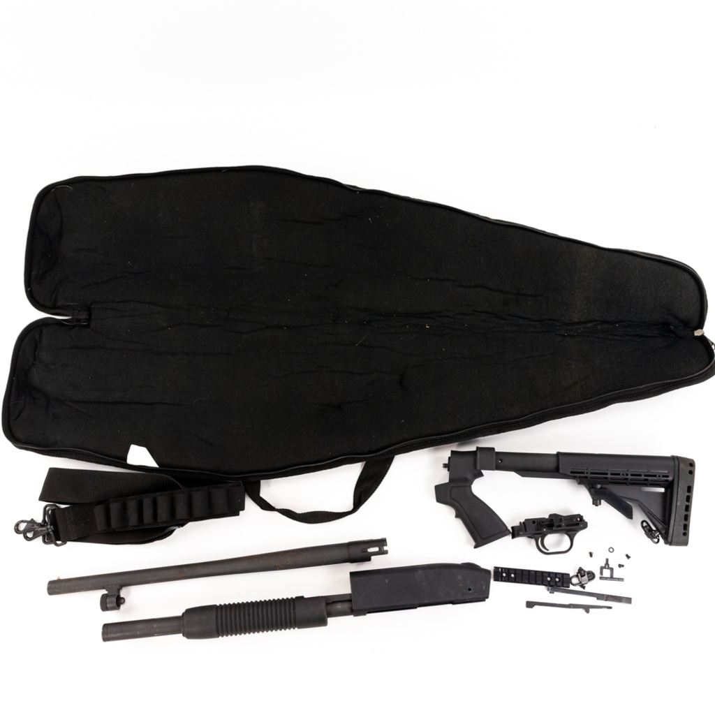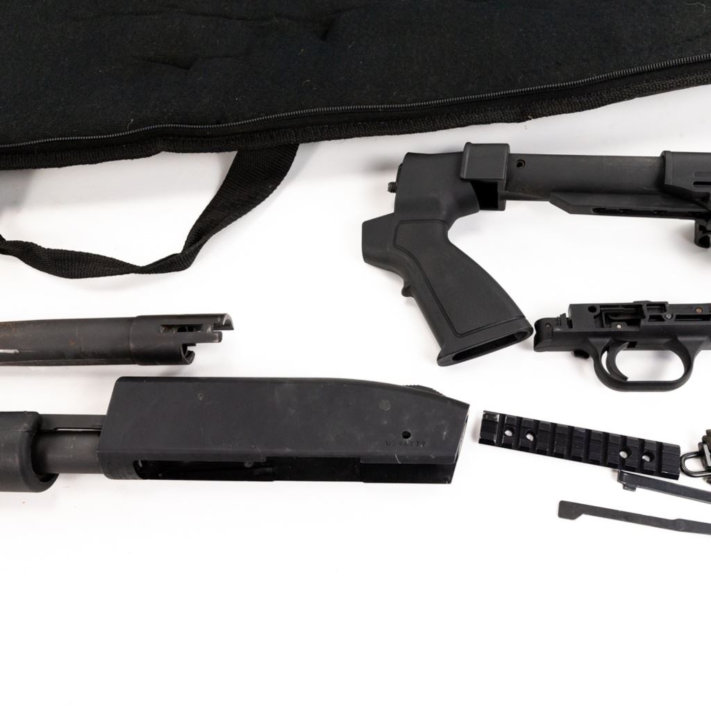 Disassembled Mossberg 500 12g Project Shotgun in good condition. It appears all parts are there. Pistol grip "AR" stock. S/N:U346777 NOTES AUCTIONEER: CANNOT SELL TO ILLINOIS RESIDENTS!!
