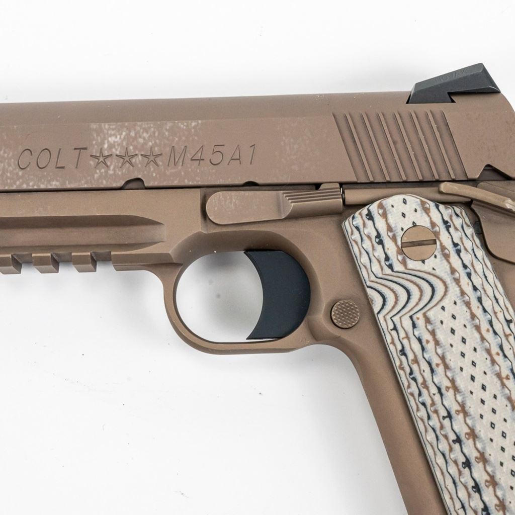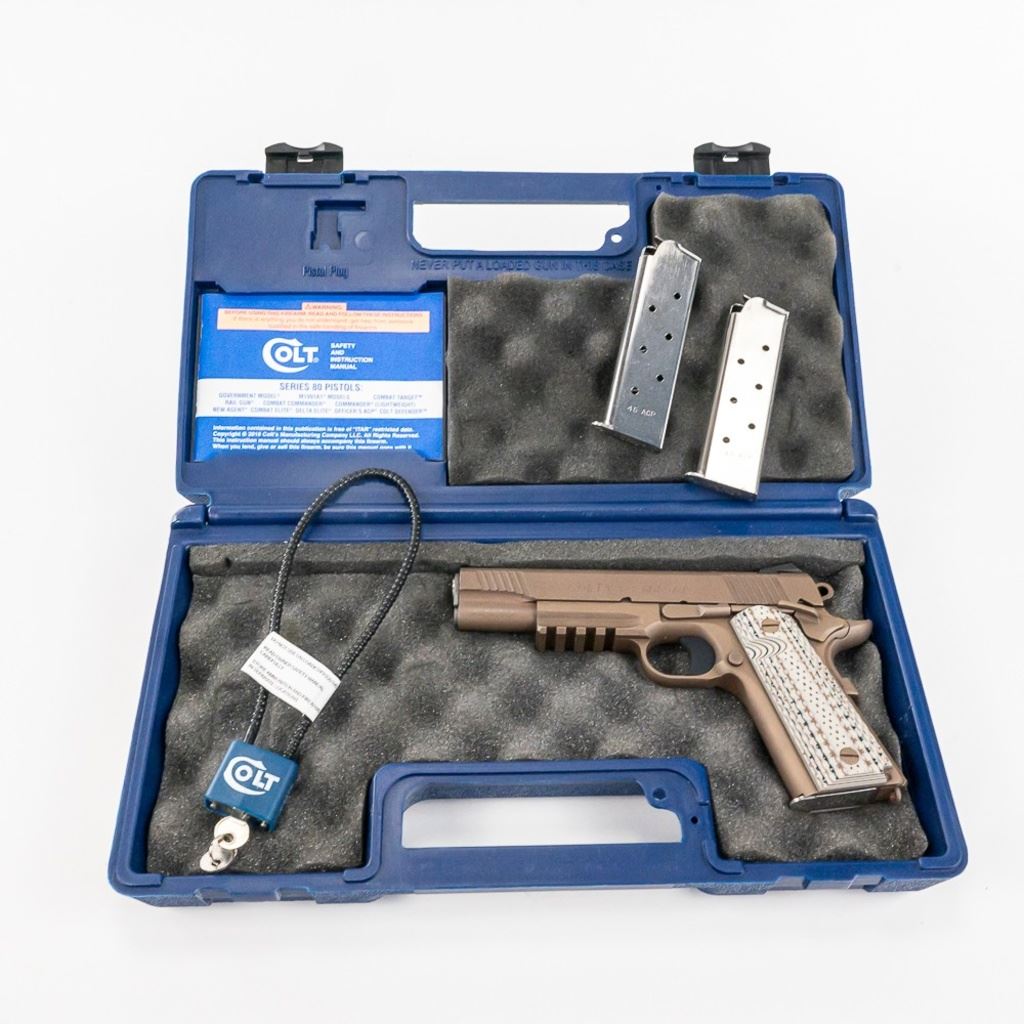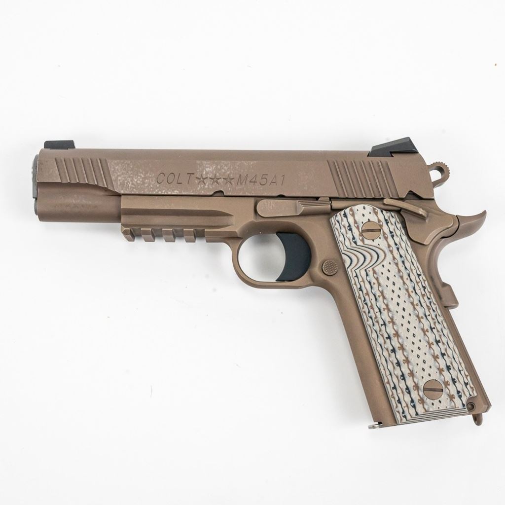 Colt "Marine" M45A1 .45acp 5" Pistol in excellent condition with very minor wear. Comes with Night sights, G2 grips, rail, original case manual and 3x magazines. S/N:14338EGA