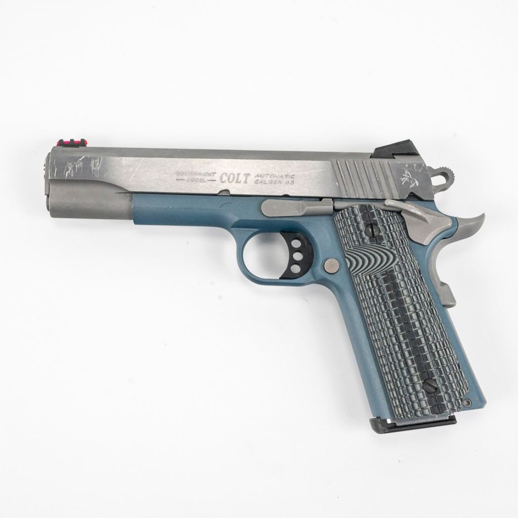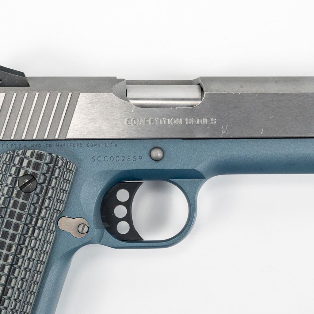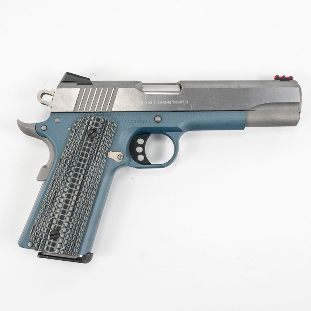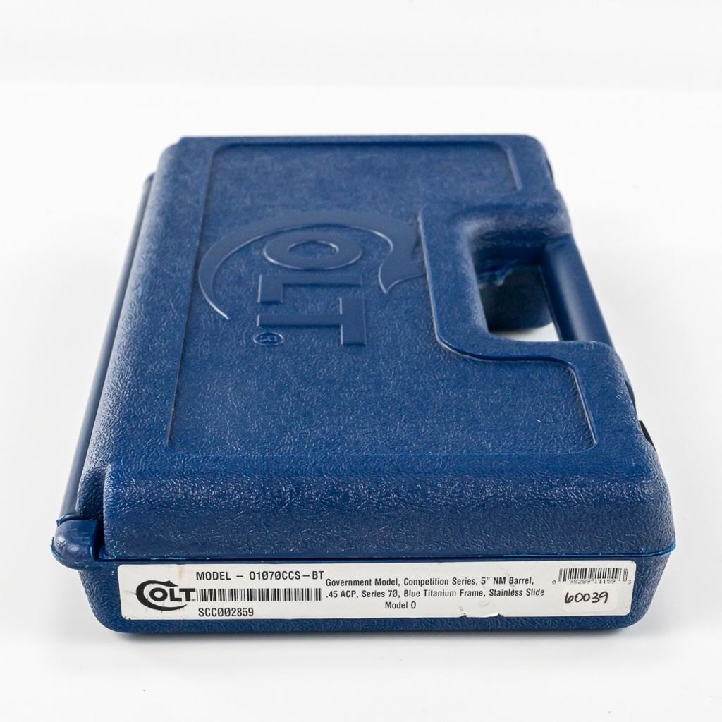Colt Competition 45acp 5" Blue Titanium Pistol in very good condition with some wear. Comes with fiber optic sight, original case, manual and 2x magazines, S/N:SCC002859