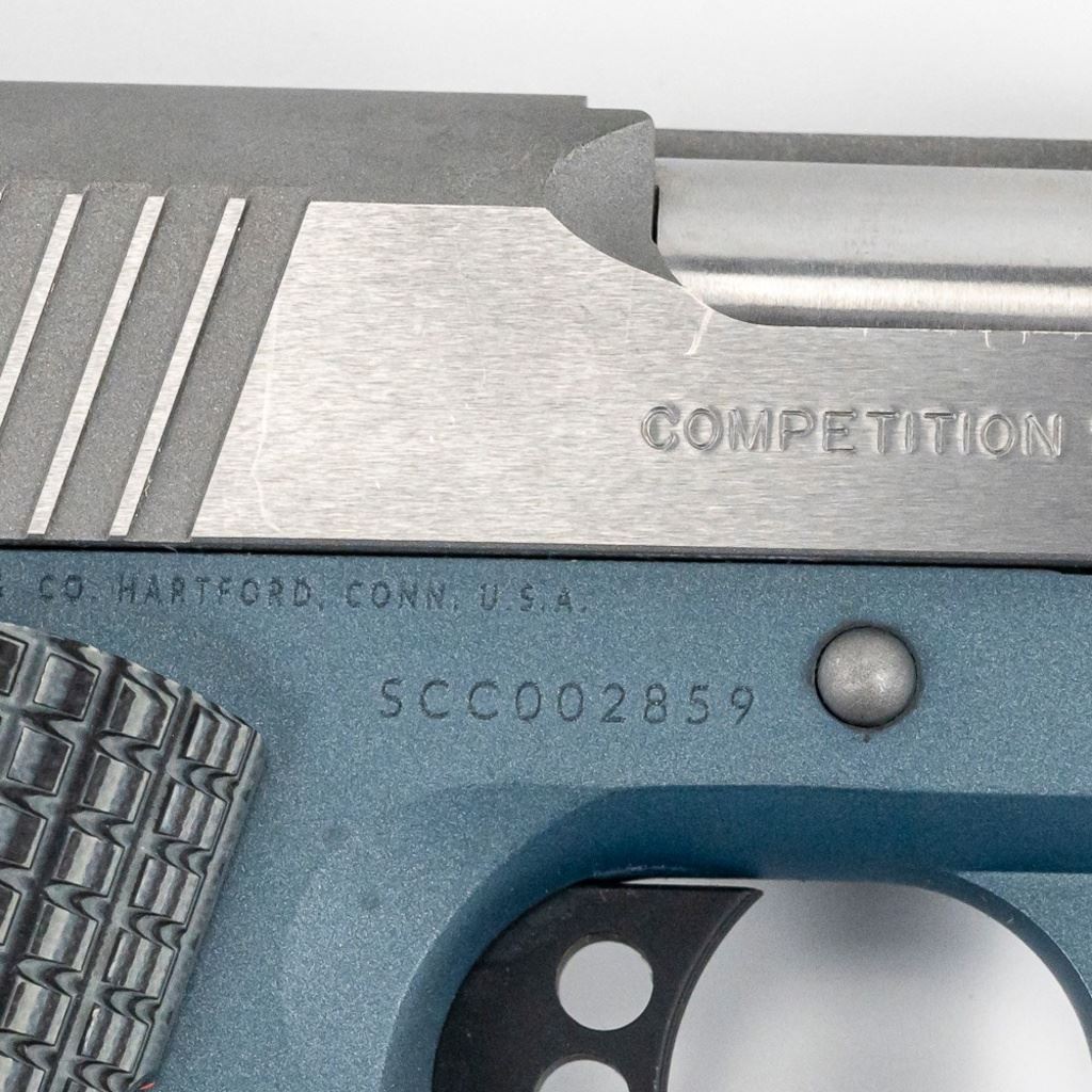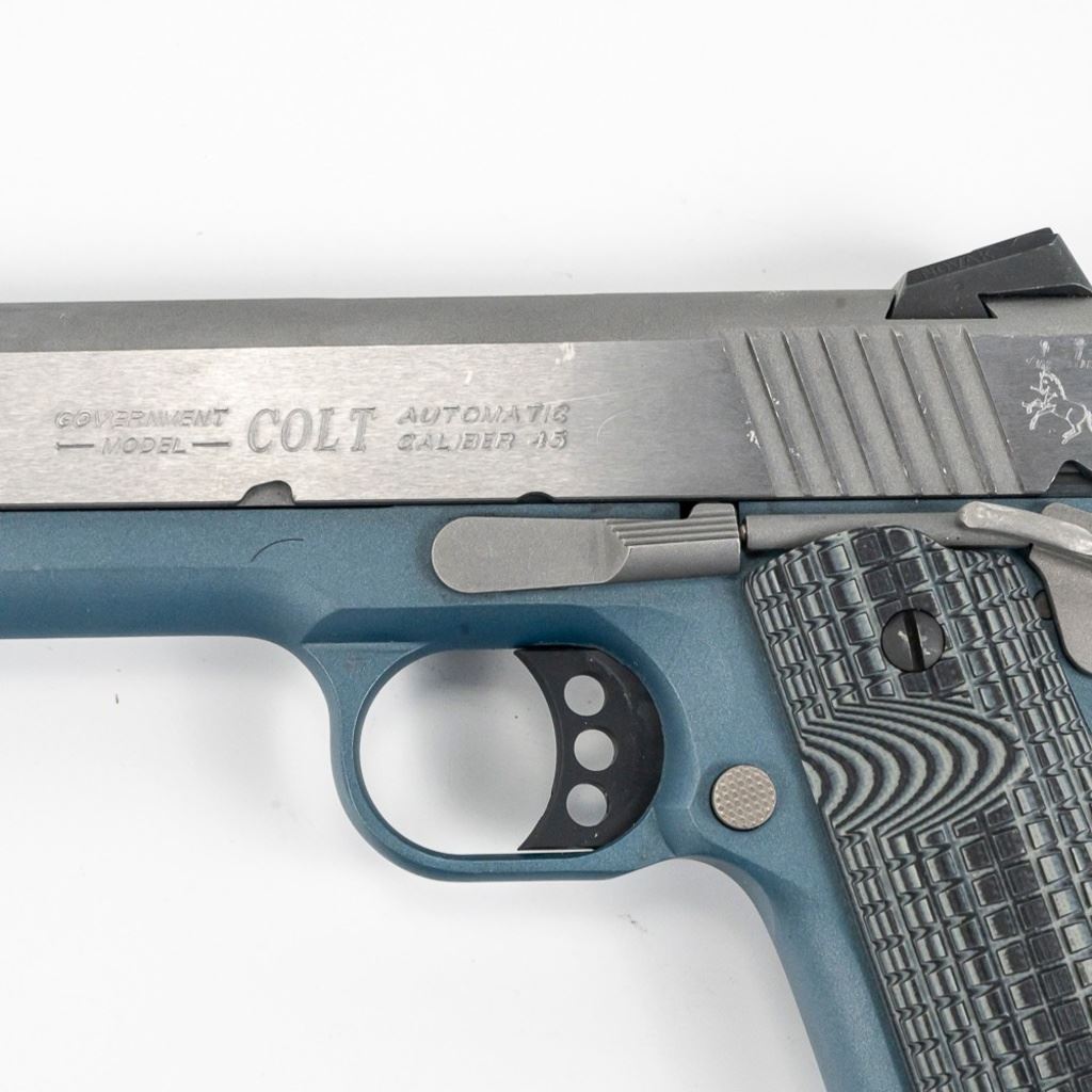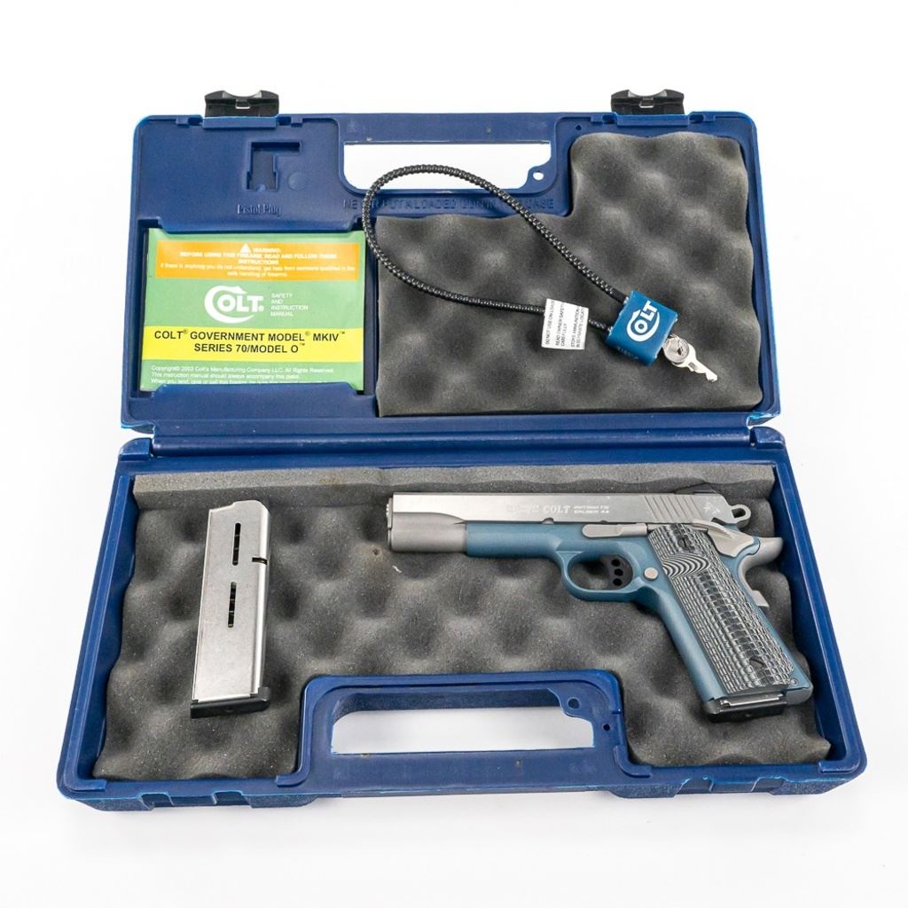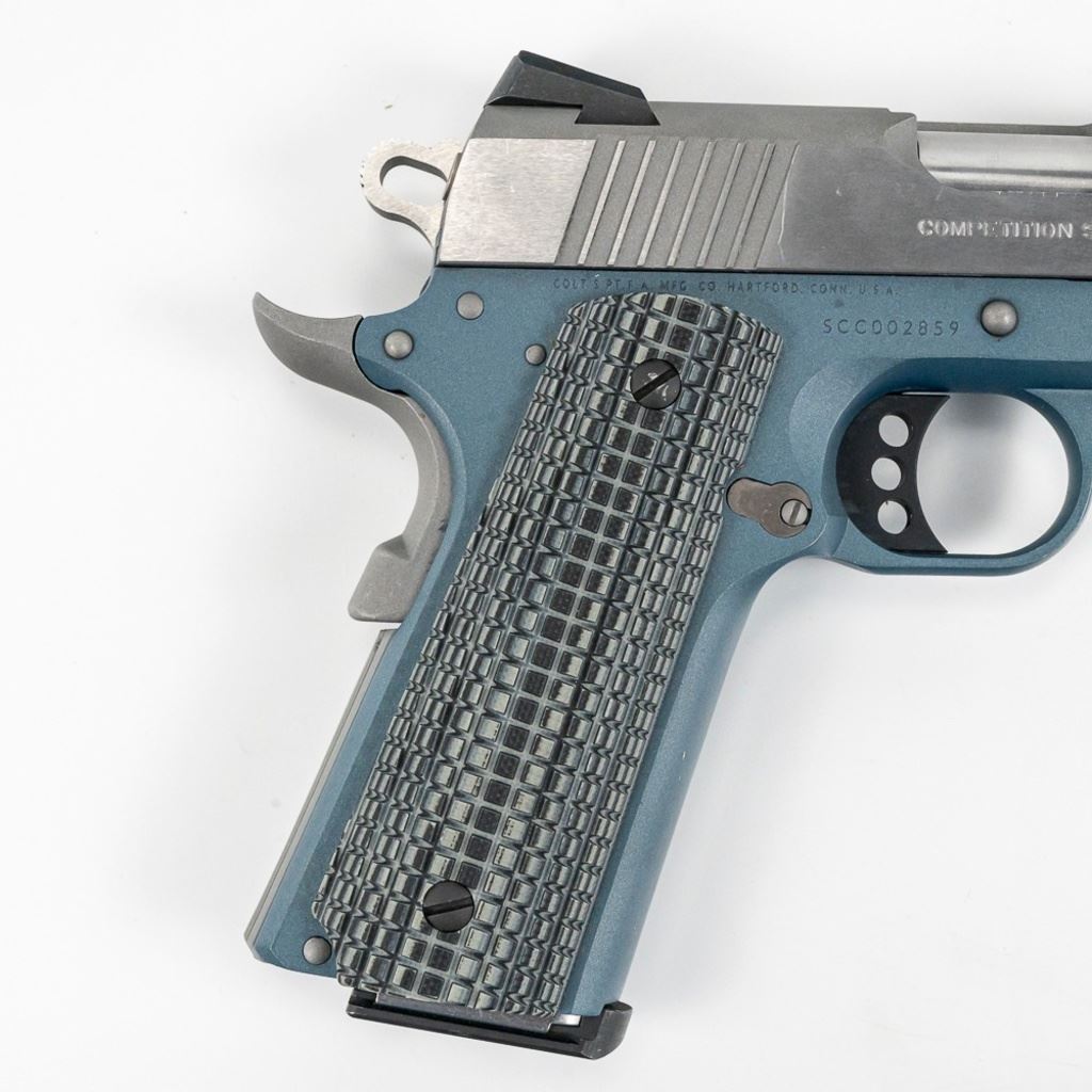 Colt Competition 45acp 5" Blue Titanium Pistol in very good condition with some wear. Comes with fiber optic sight, original case, manual and 2x magazines, S/N:SCC002859