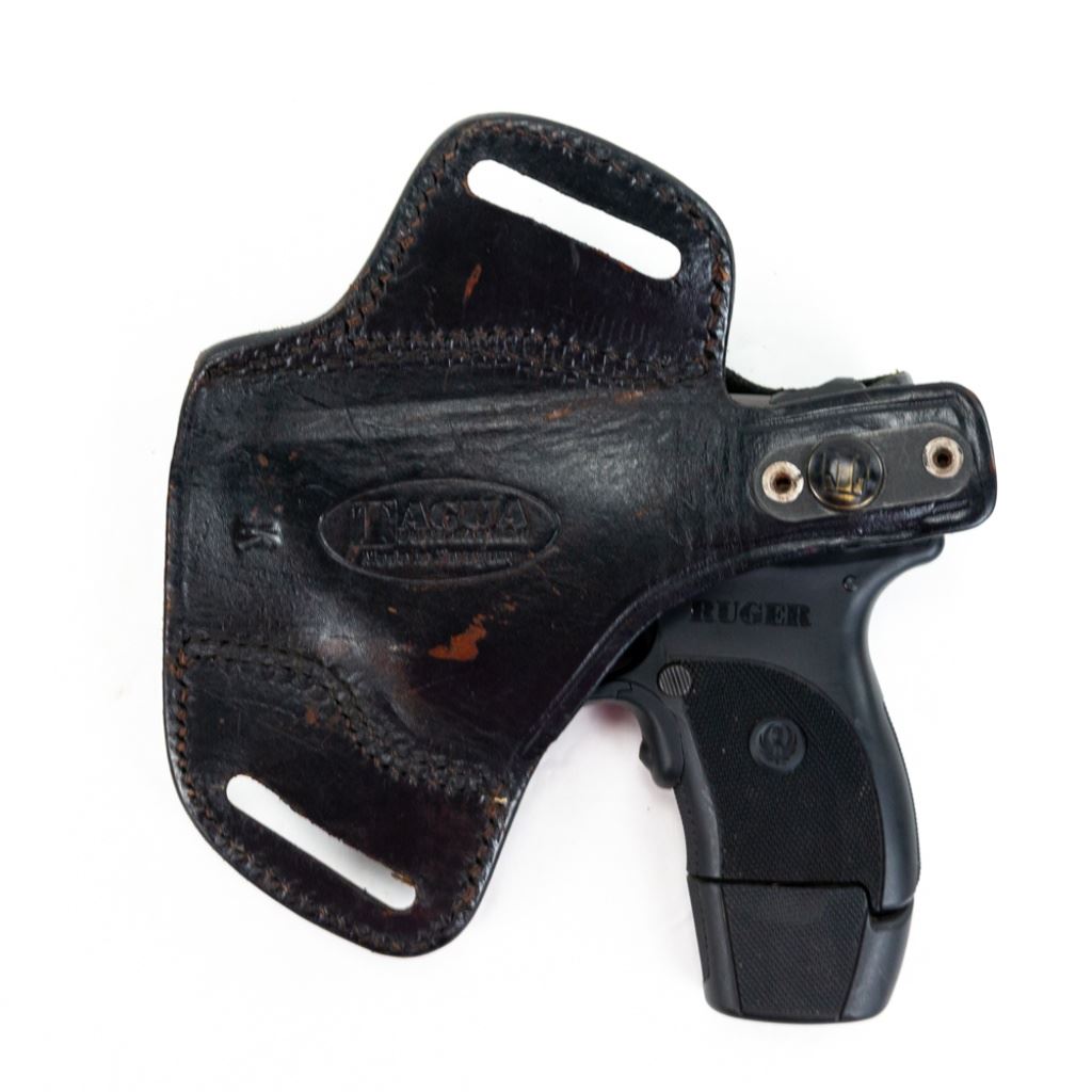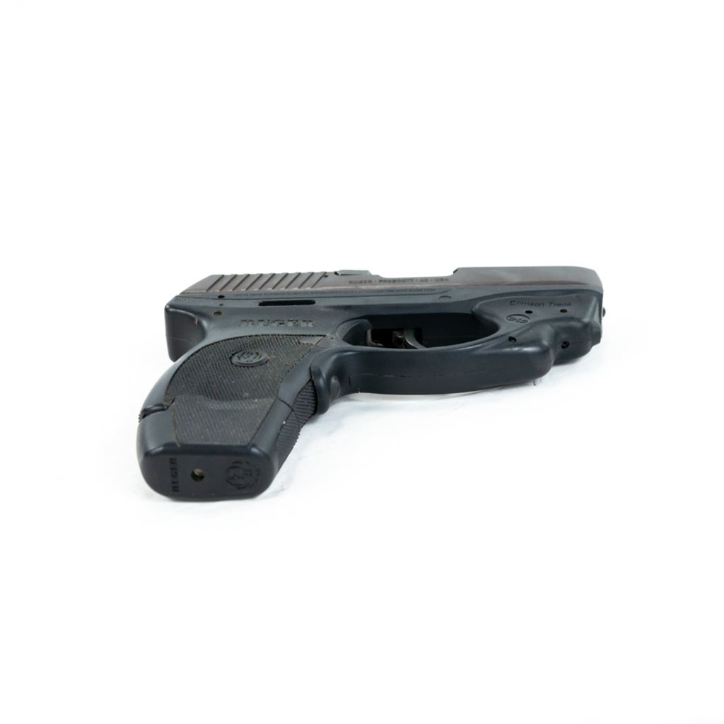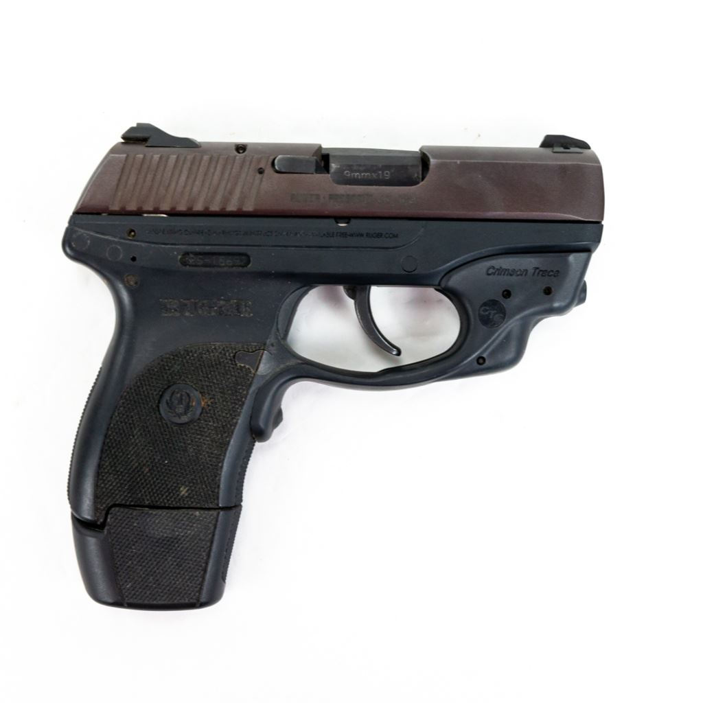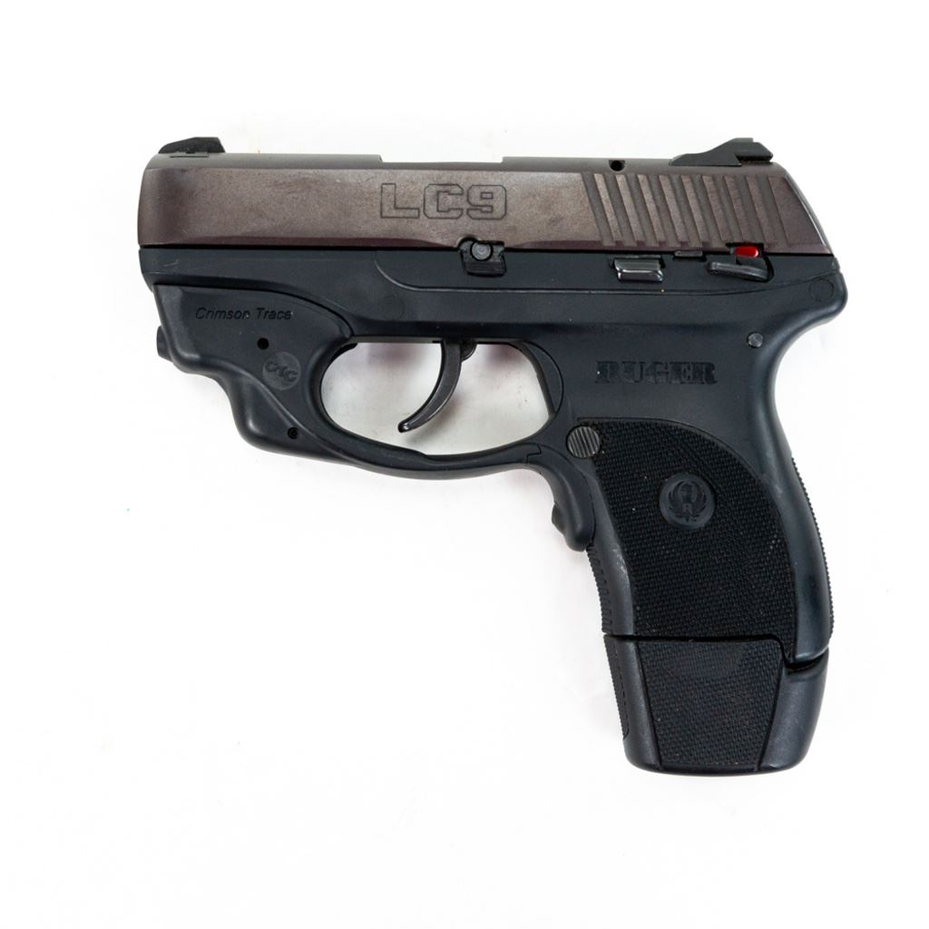 Ruger LC9 9mm Pistol w/ CTC Laser in very good condition with minor wear. Comes with a Crimson Trace red laser mounted to the trigger guard, an extended magazine and a Tagua leather holster. S/N:325-18692