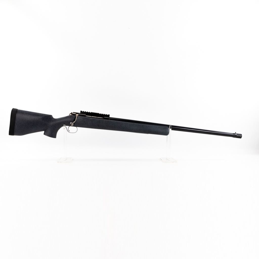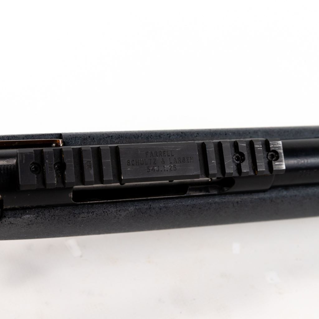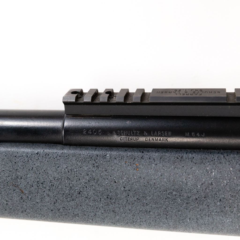CUSTOM Rifle by Famous Gun manufacturer Shultz & Larsen's M54J 338Lap Rifle in very good condition with minor wear. Heavy competition barrel with muzzle break. target beaded and free floated chassis and custom trigger, S&L scope rail. Schultz & Larsen; Known for Accuracy! S/N:2405