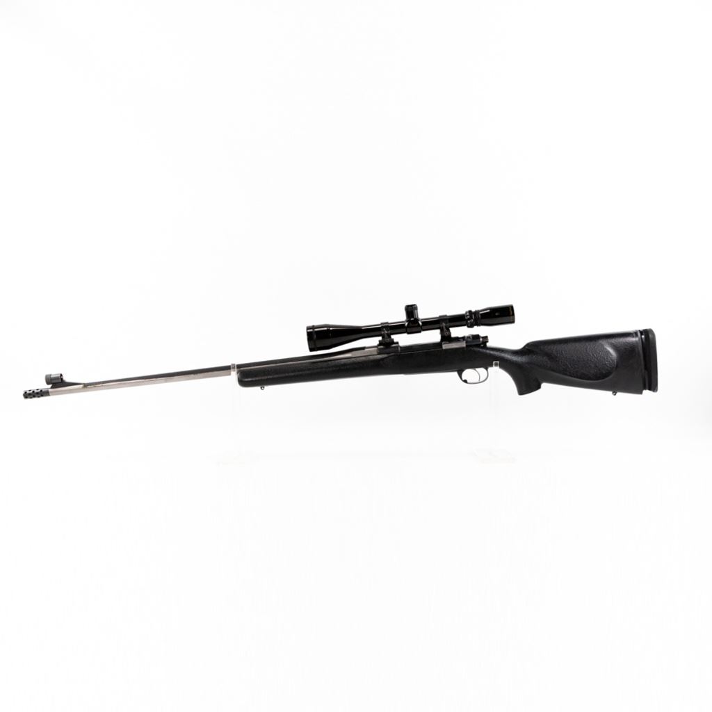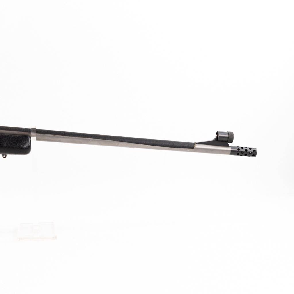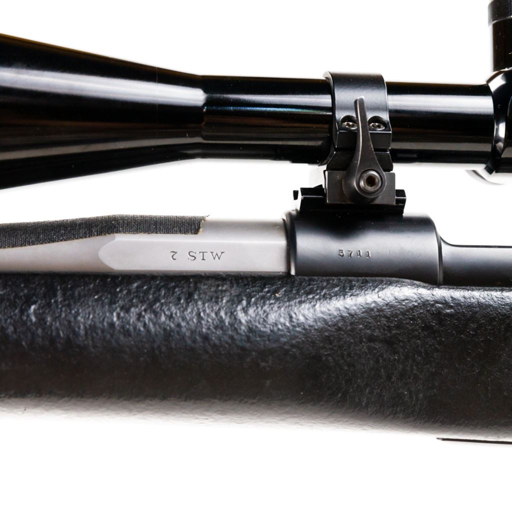 Custom Unknown Mauser Style 7-STW Rifle in very good condition with minor wear. Comes with a Burris 6-18x42 AO scope, custom stainless barrel with non-glare tape and muzzle break, custom engraved bolt handle and a custom adjustable LOP, free floated stock. S/N:3711