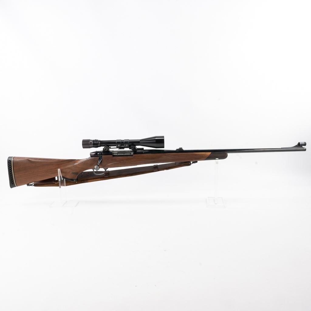 WEST GERMAN (JPSauer)!!! Weatherby Mark V 300 Weatherby mag 26" Rifle in excellent condition. Comes with a Bausch & Lomb 2.5-8x40 scope and leather strap. Beautiful Wooden Monte Carlo stock with Ebony pistol grip & fore end caps. "R.O.S" engraved on floorplate. C&R Eligible S/N:P2453