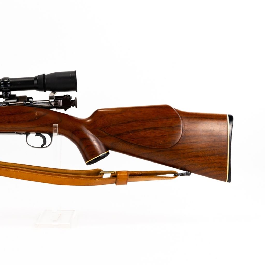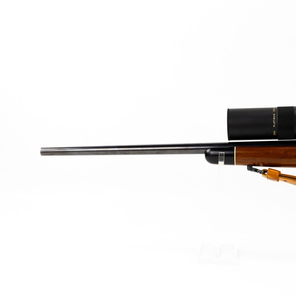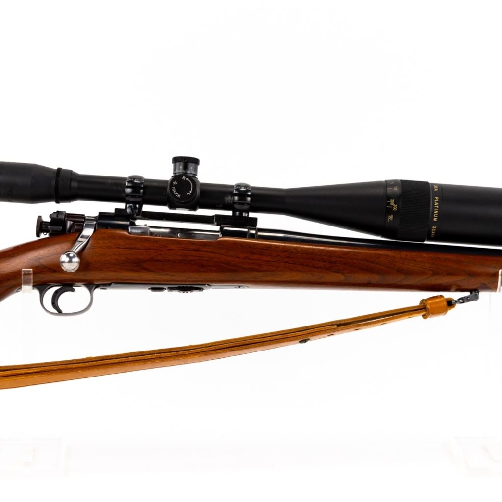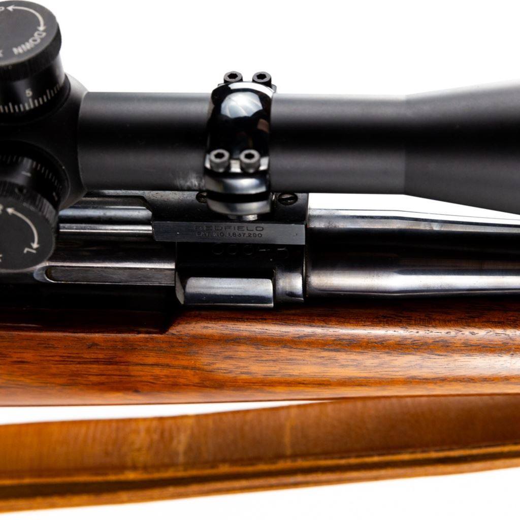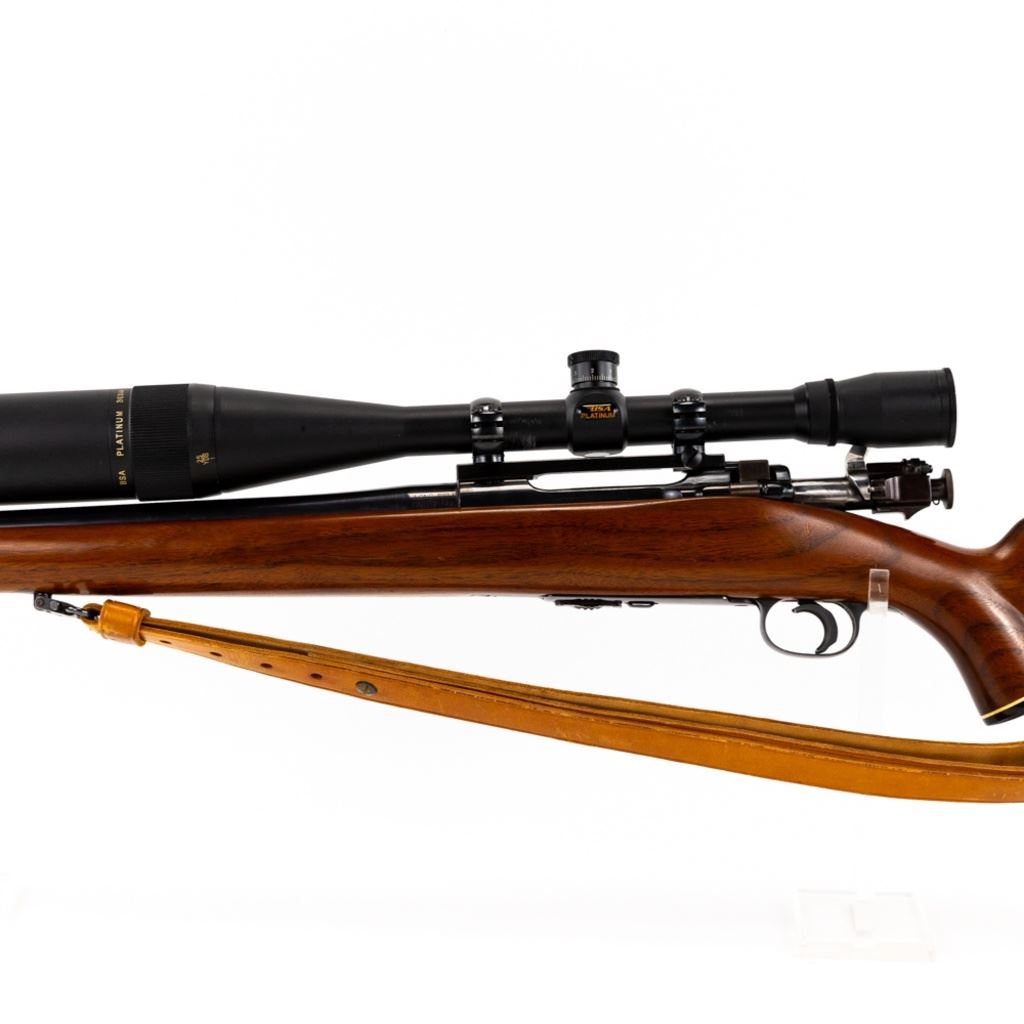 CUSTOM!! Springfield 1922 22lr 24" Military Training Rifle in excellent condition with very little wear! The action seems fully functional and the bore is sharp and bright. It has been customized with a fully floated 24" barrel, a Timney trigger, a trigger shoe, a Bishop Monte Carlo stock with Ebony fore end and pistol grip caps a BSA Platinum 36x44 AO, target turret scope on a Redfield windage adjustable mount and rings and leather sling. Comes with 2x Magazines!! An absolutely beautiful target rifle S/N:5884B