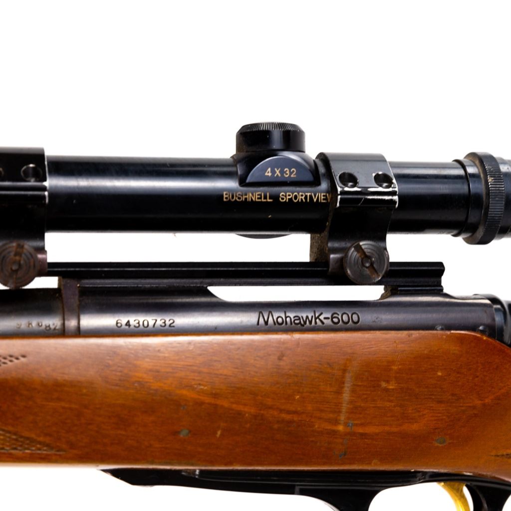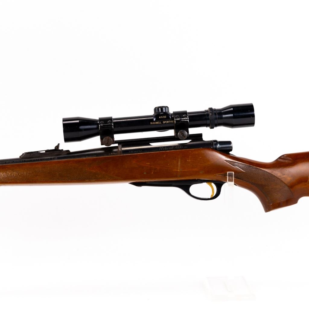 Remington Mohawk 600 .243win Rifle in good condition with wear and oxidation. Stock looks like it was shortened LOP=14.25" The bore is sharp and bright. Comes with a Bushnell Sportview 4x32 scope. S/N:6430732