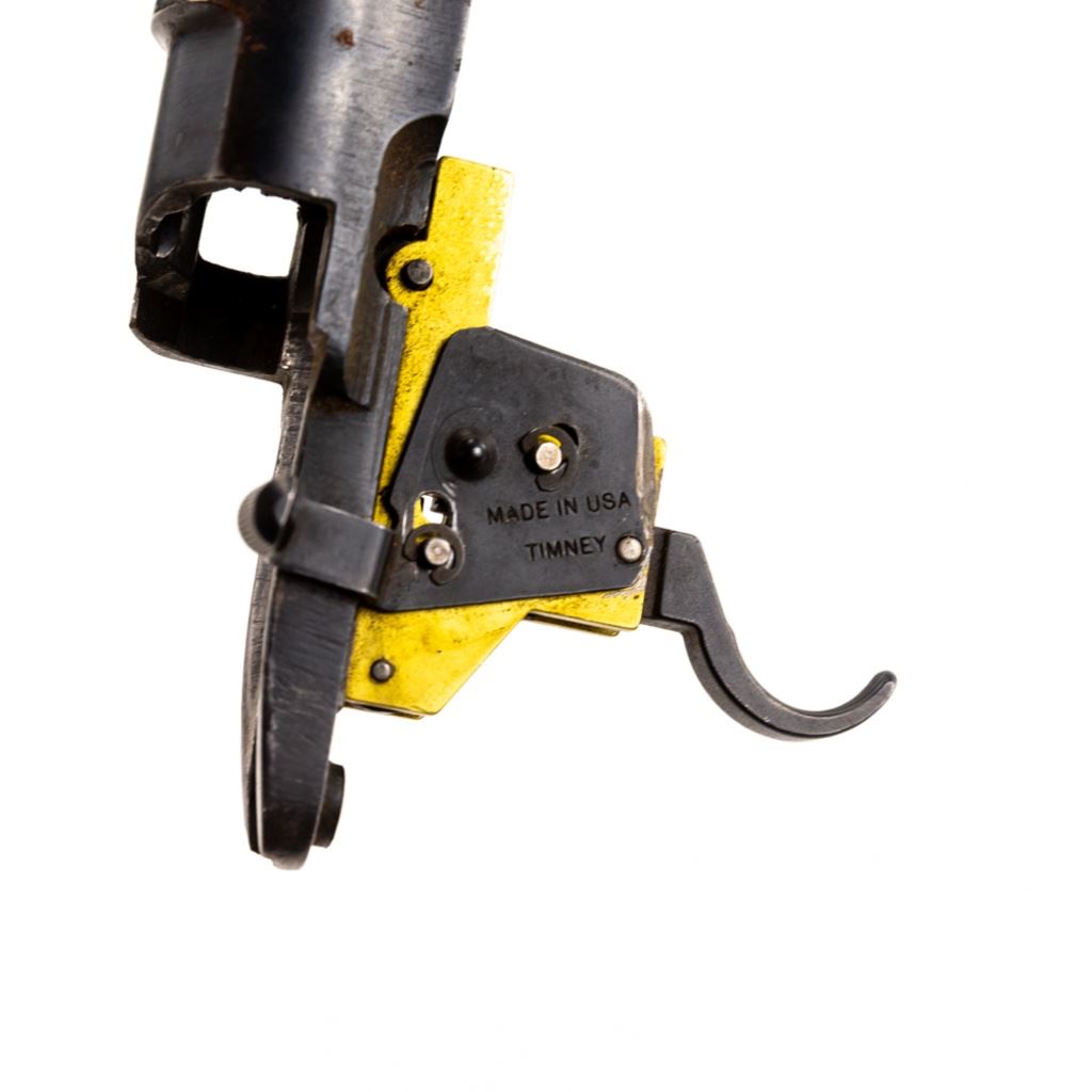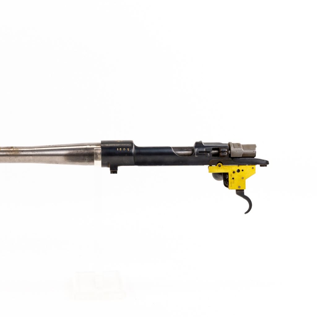 Turkish Mauser Barreled Receiver in very good condition with wear and surface oxidation. TIMNEY Trigger! Unknown Caliber (approximately 7mm). Missing bolt latch. S/N:1607