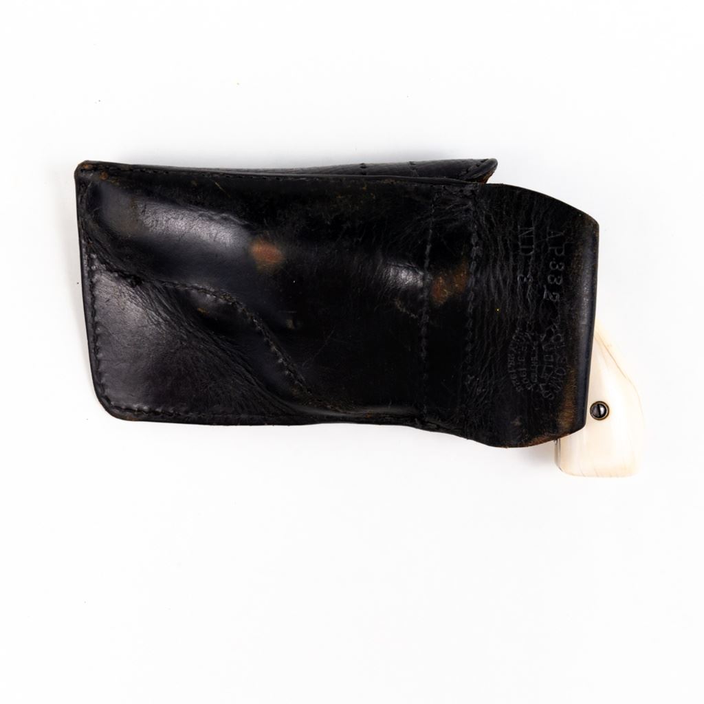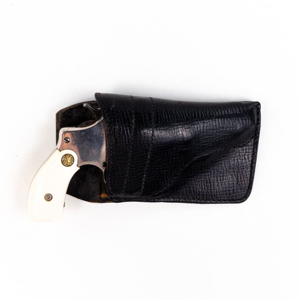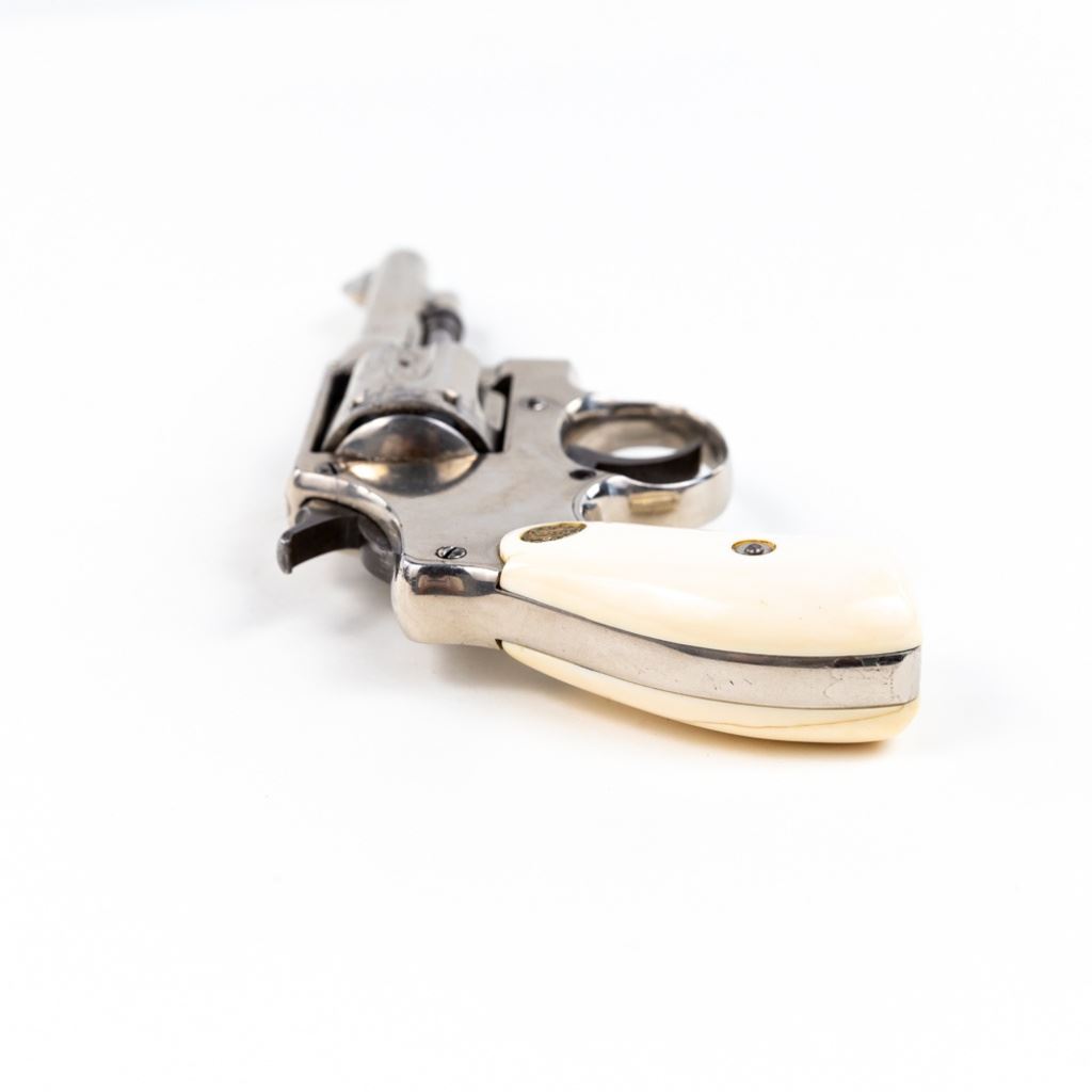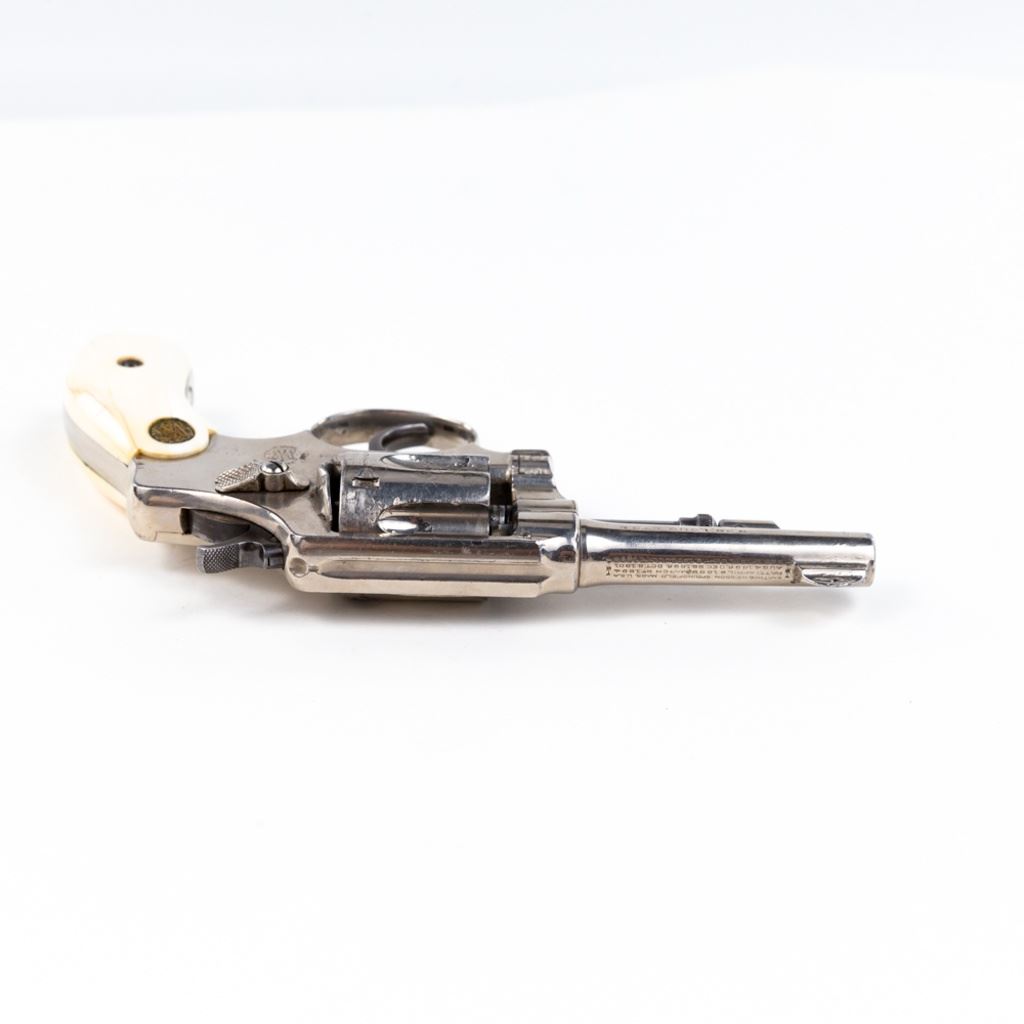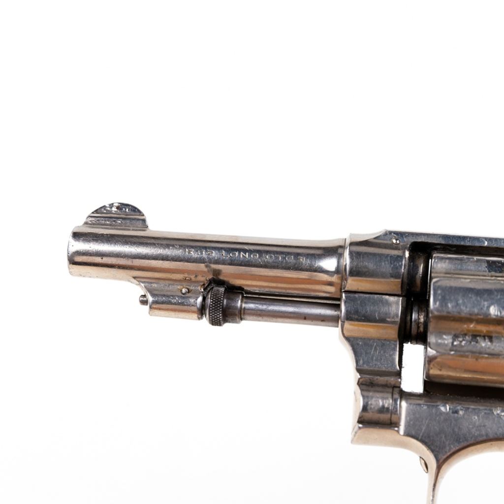 S&W 5-Screw Hand Ejector .32Long 3.25" Revolver in good condition with wear and "bubbling" nickel finish. several scratches. Timing is a little off. Includes leather holster. C&R Eligible S/N:30404