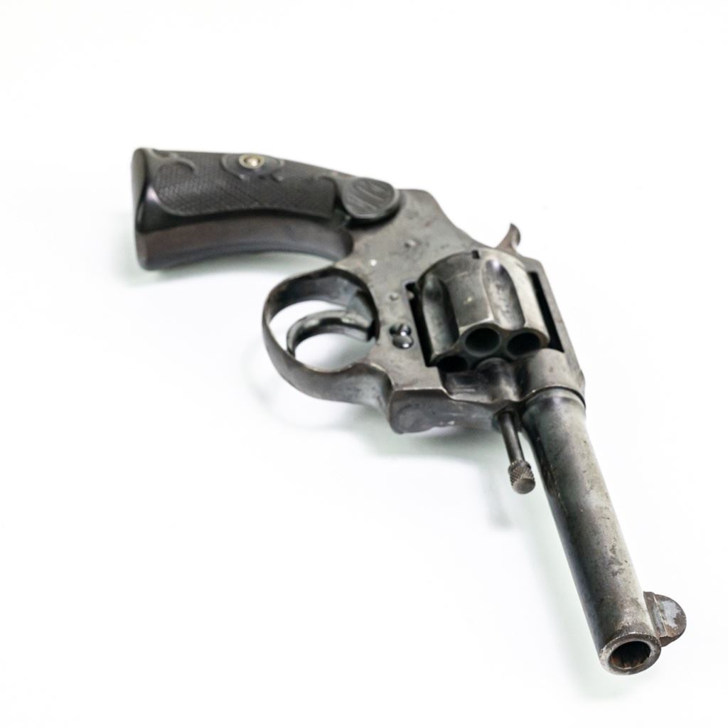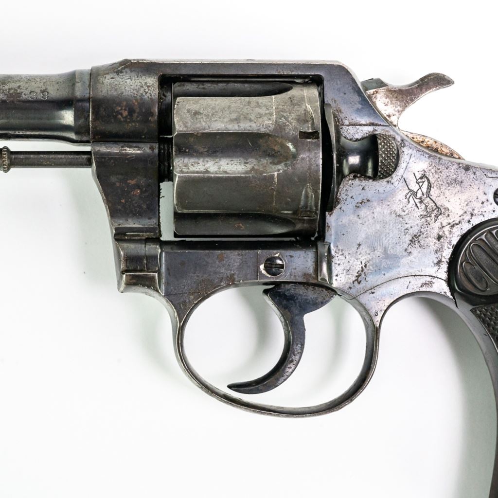 Colt Police Positive 38 4" Revolver in good condition with wear and oxidation. Action is tight and smooth. Grips are chipped. MFG 1929 C&R Eligible S/N:147750