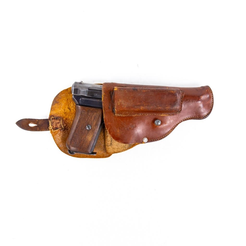 German Police Re-issue Mauser M1914 7.65mm Pistol in very good condition with light wear. Police re-issue dated 1920. Front strap marked "L.Ar..49". Comes with 1942 police holster. C&R Eligible S/N:253895