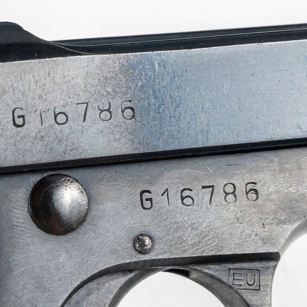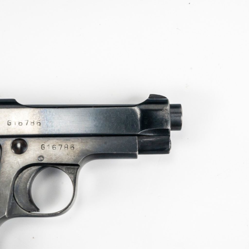 Beretta M1935 .380acp Pistol in excellent vintage condition with minor wear. The bore is sharp and shiny. Comes with 4x magazines (2x still in the wrapper), a leather holster, a canvas holster and 2x modern Beretta cases (1x hard & 1x soft) and 25rds of FMJ ammo. C&R Eligible S/N:G16786