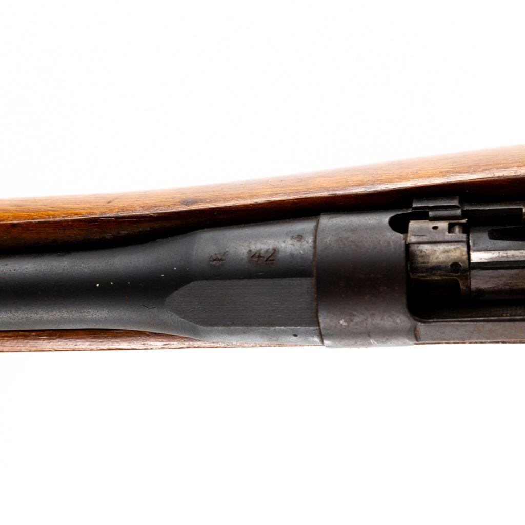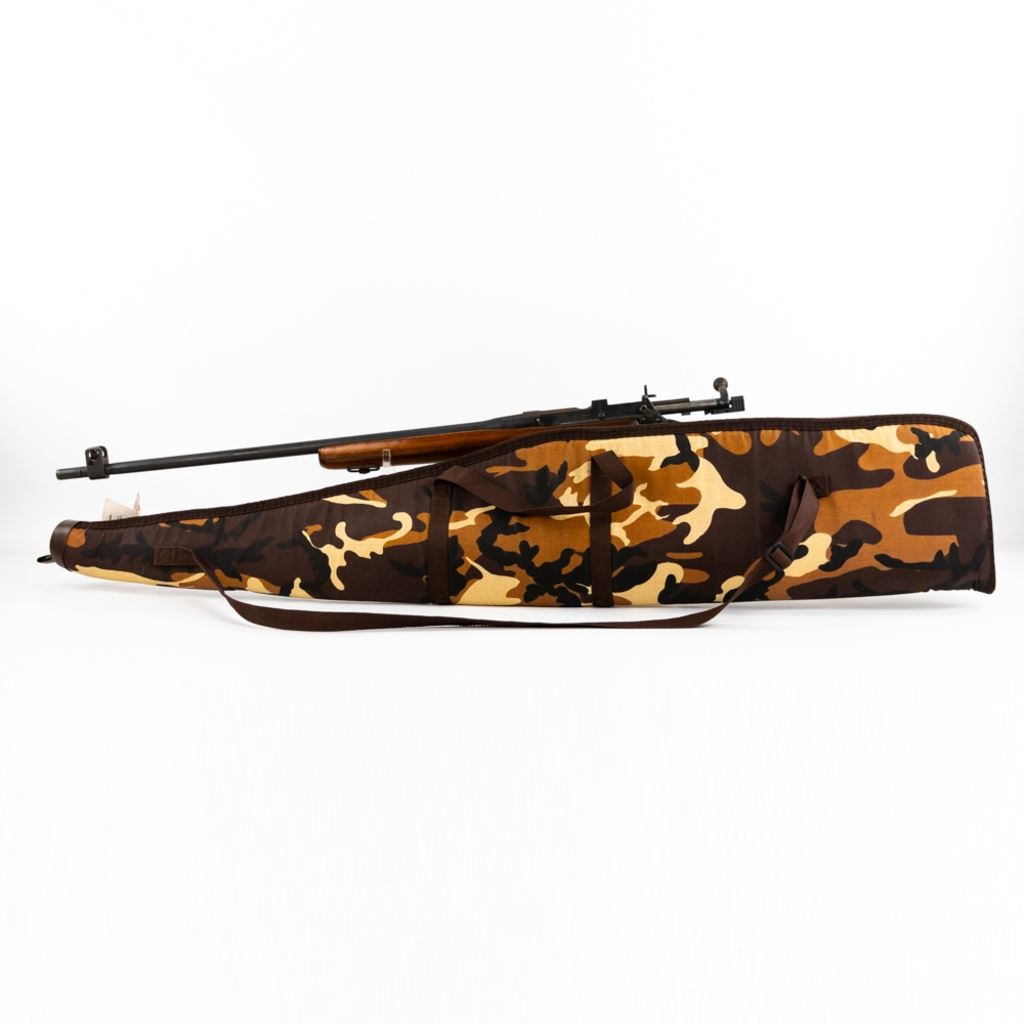 Sporterized Enfield No4 MKI .303 Rifle in good condition with wear. The bore is dark. No magazine. Soft case. S/N:3811