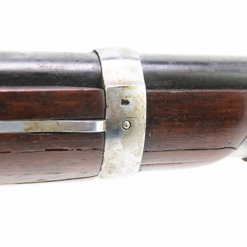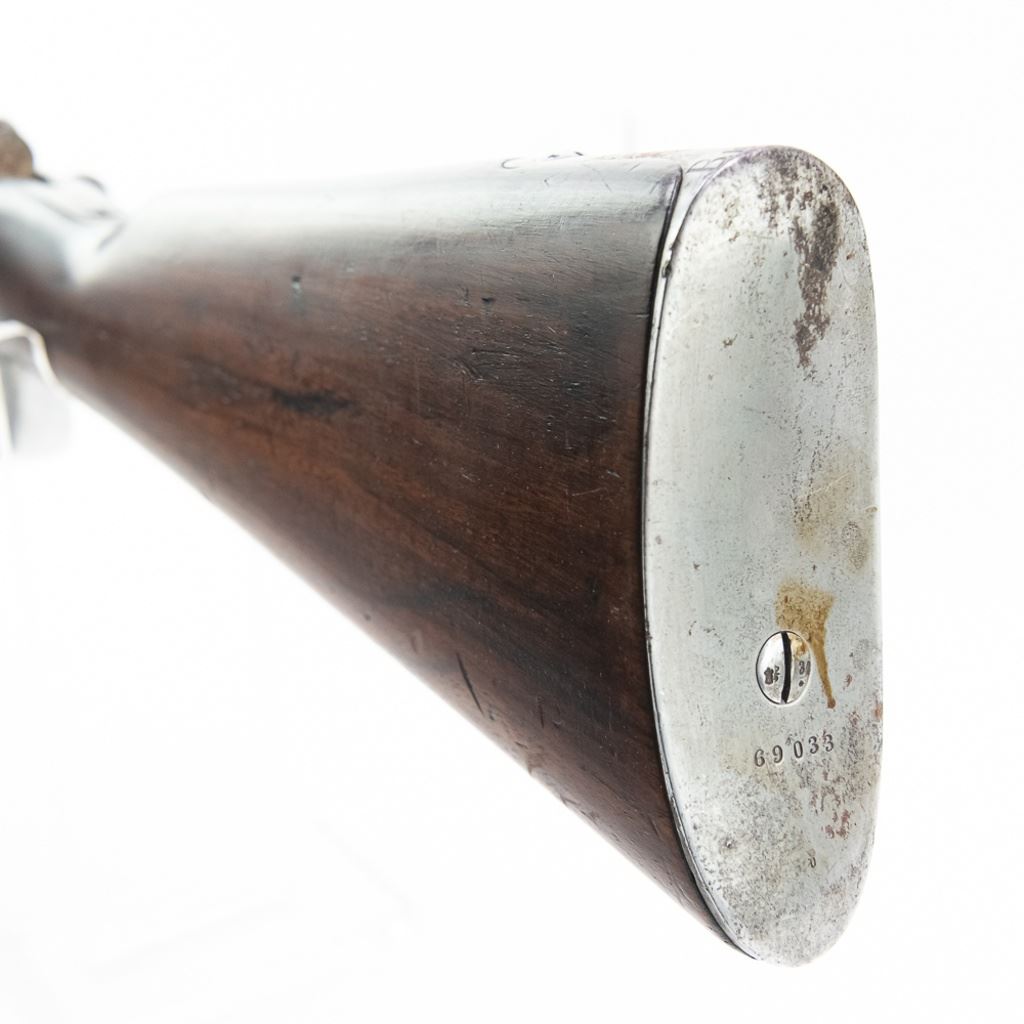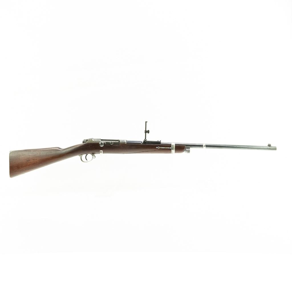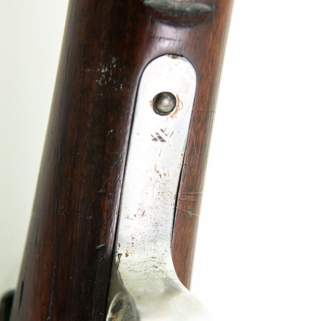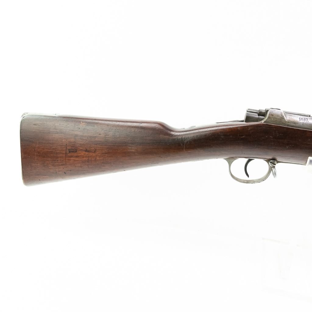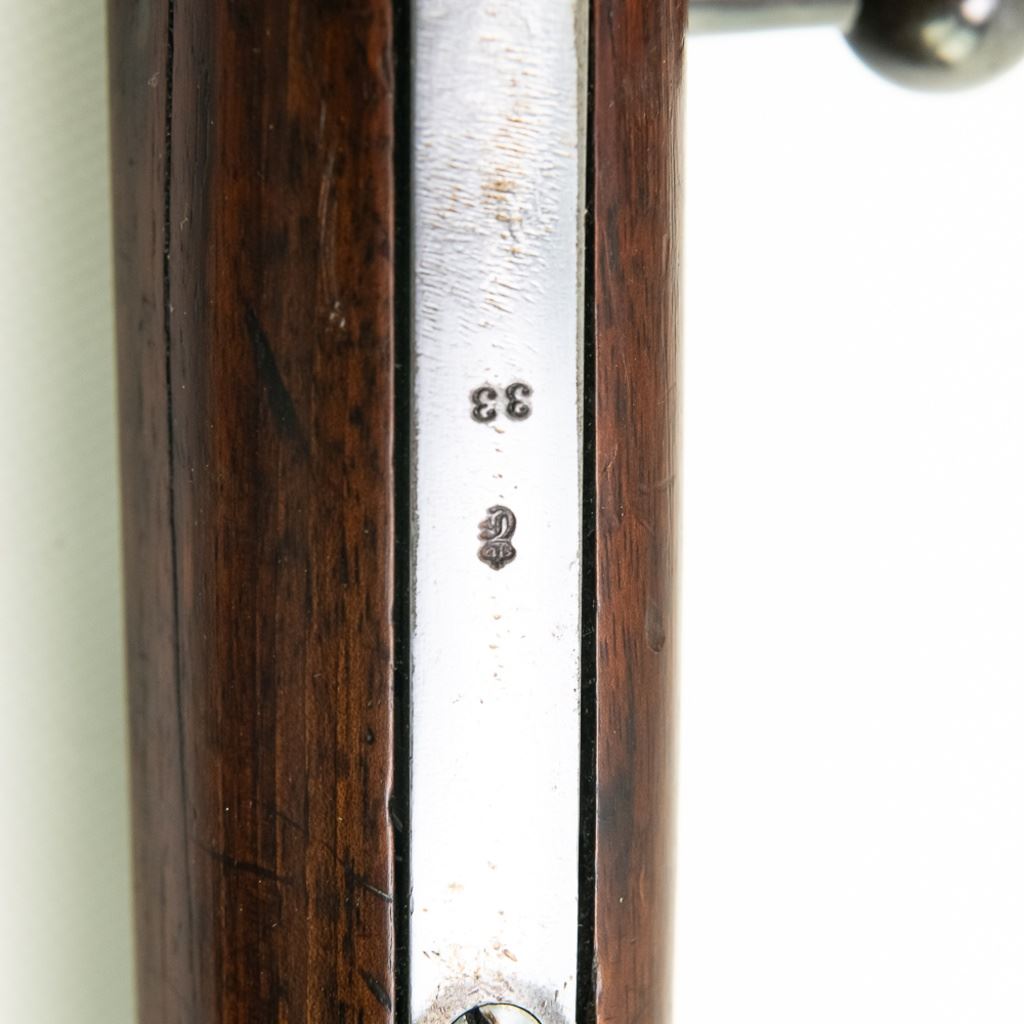Amberg M71/84 11mm Carbine in very good condition with wear and remnants of oxidation. The bore is excellent and shiny. There are a couple of cracks in the forearm. Several crowned proof marks. Numbers on the receiver, bolt, barrel, safety, trigger guard and trigger guard bolt, barrel band, magazine cap, rear sight, butt cap and screws, sling screws and bolt release all match. C&R Eligible S/N:69033