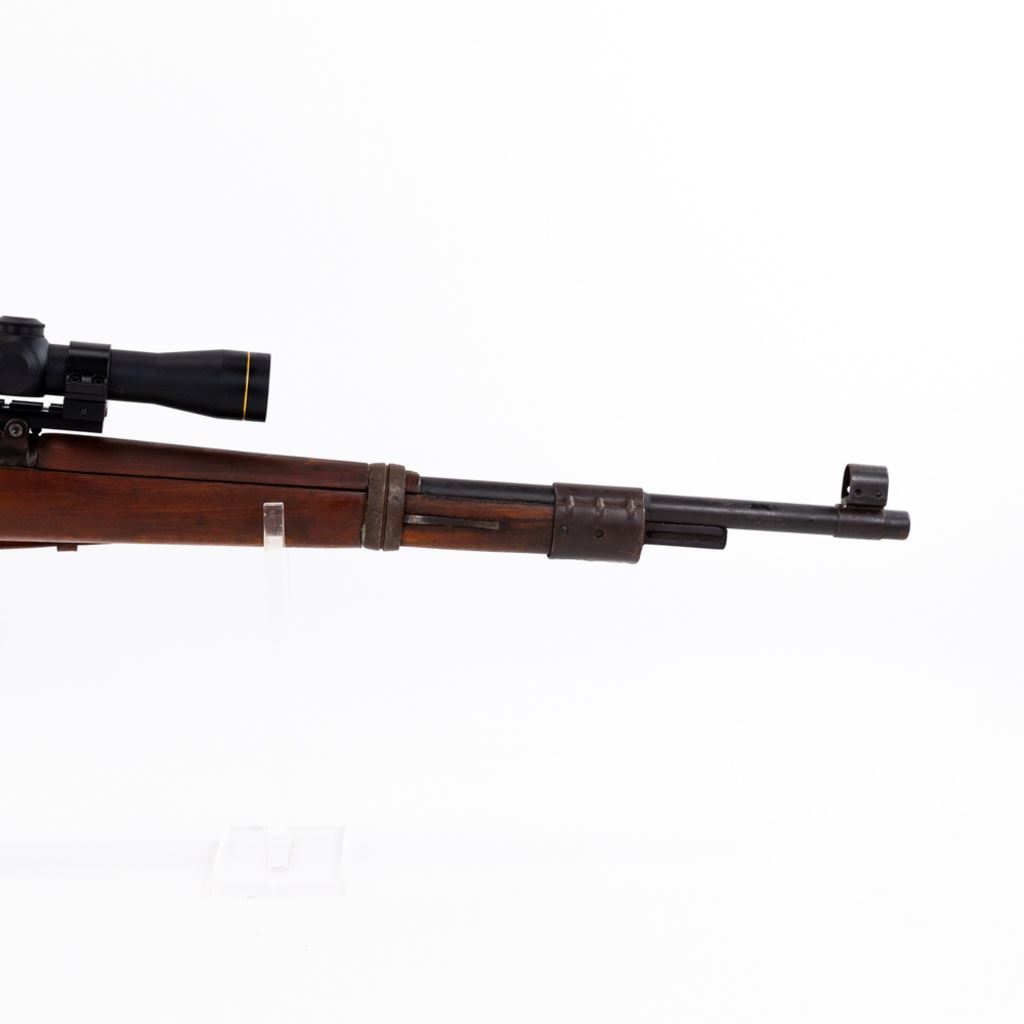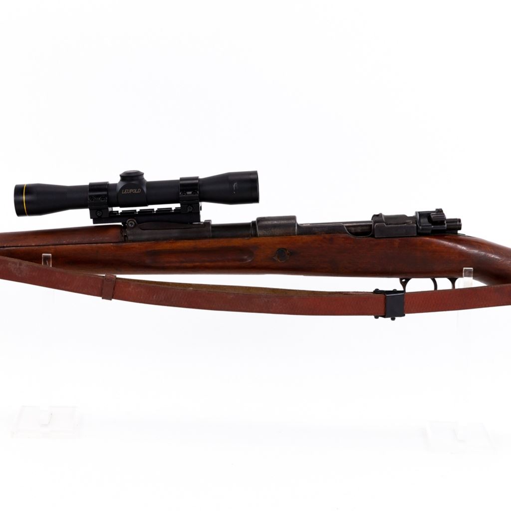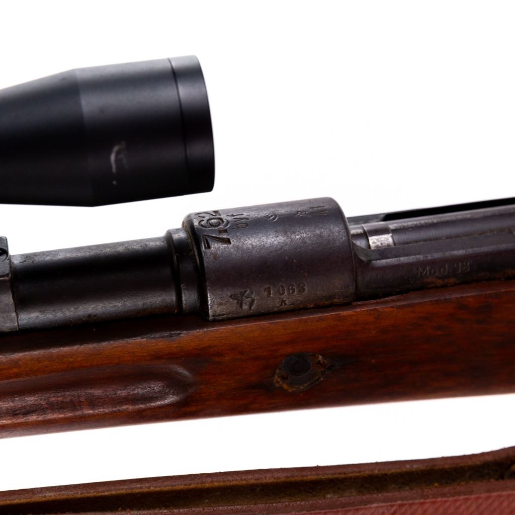 Mauser-Werke "byf" Mod98 7.62 Rifle in very good condition with wear and light oxidation. The bore is sharp and shiny. Comes with a Leupold M8 2.5x scope forward mounted and a leather sling. C&R Eligible S/N:1063