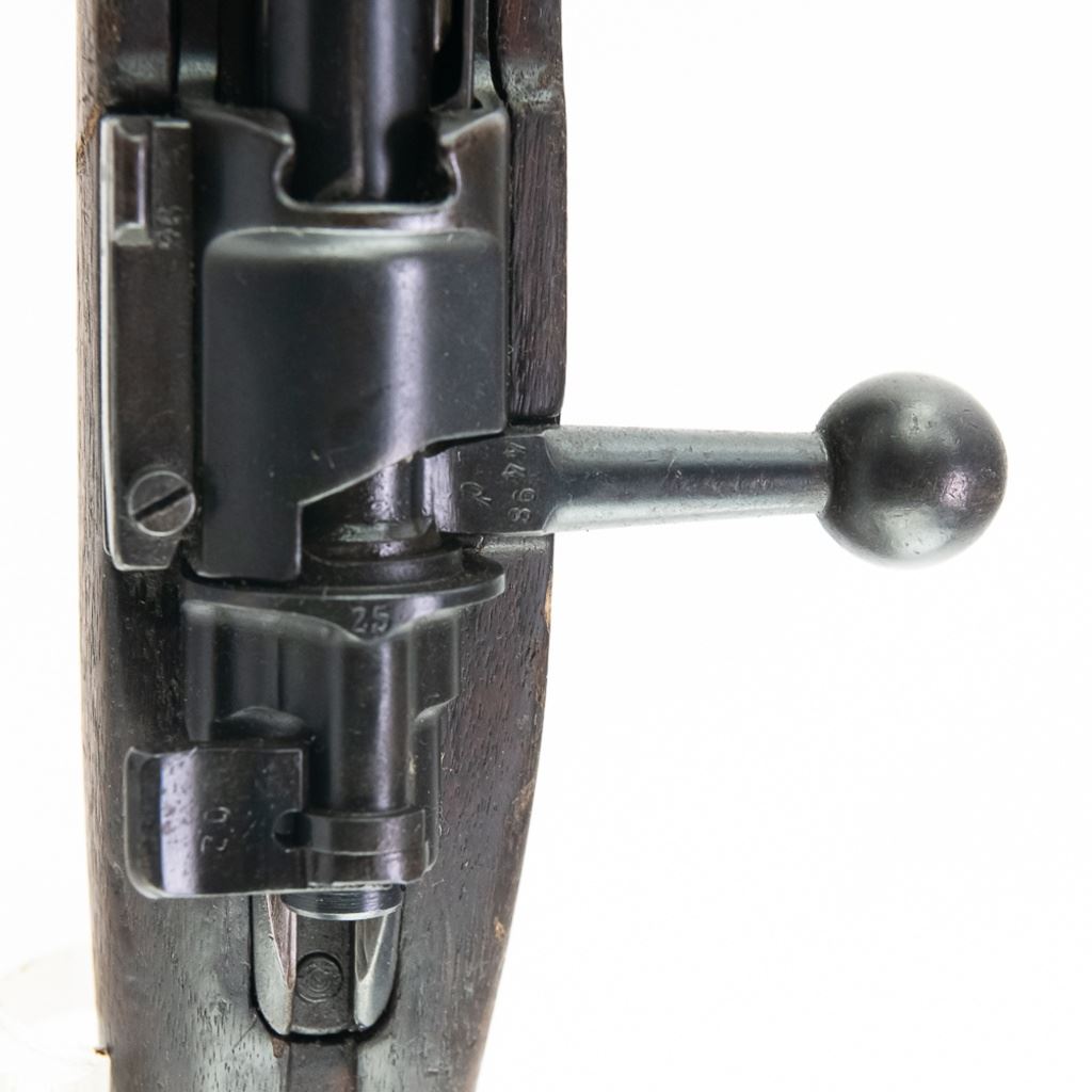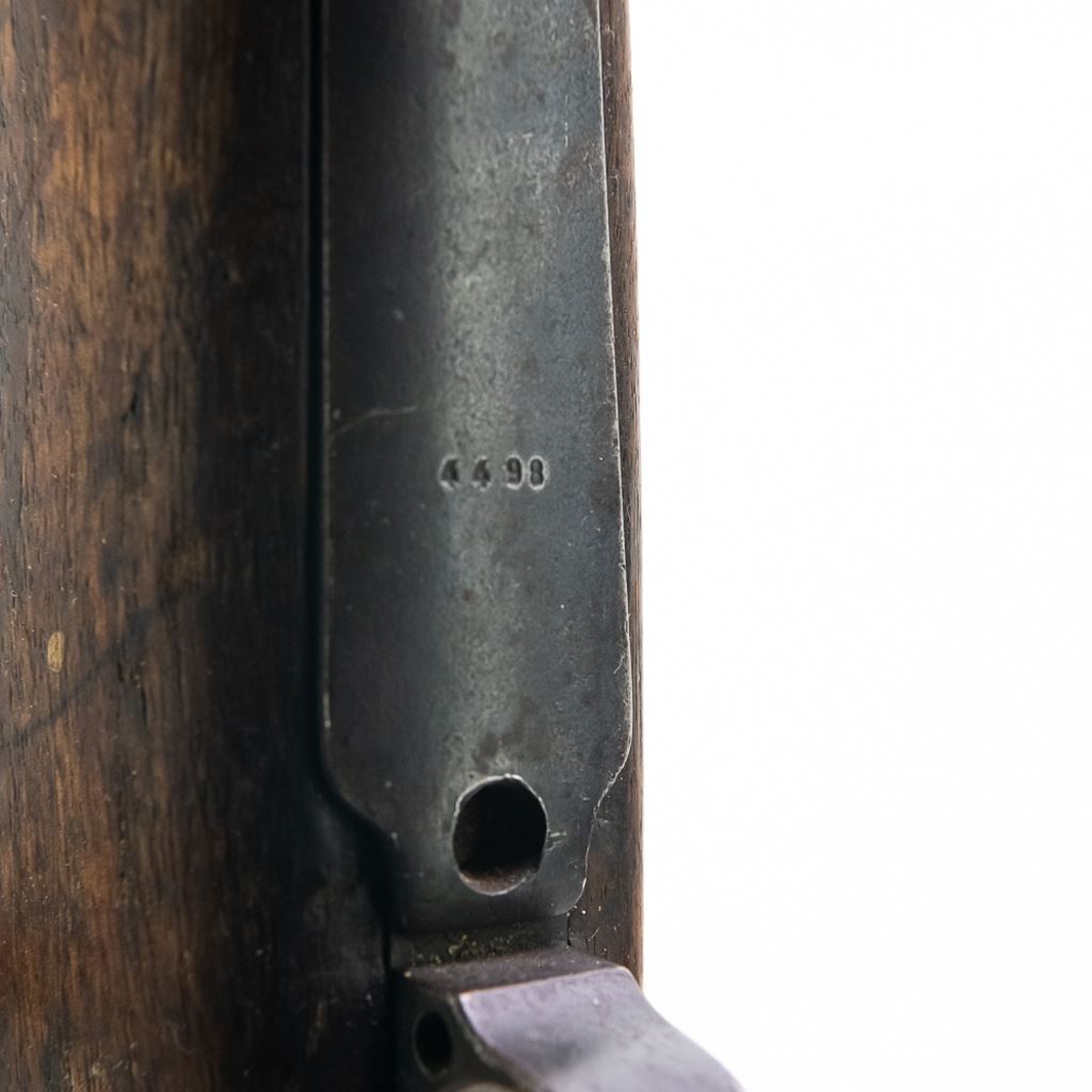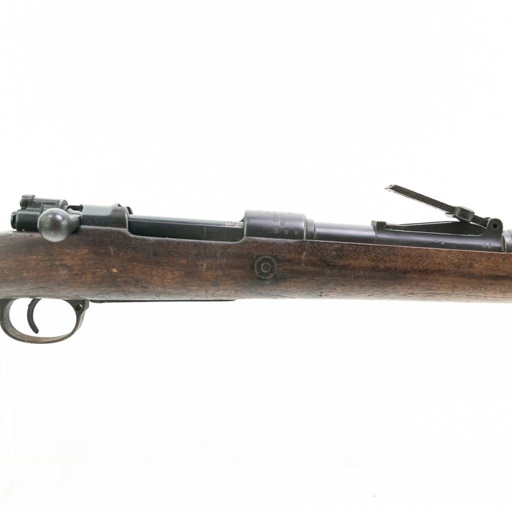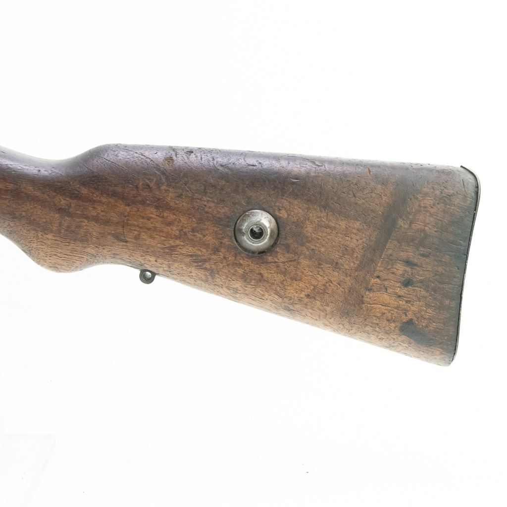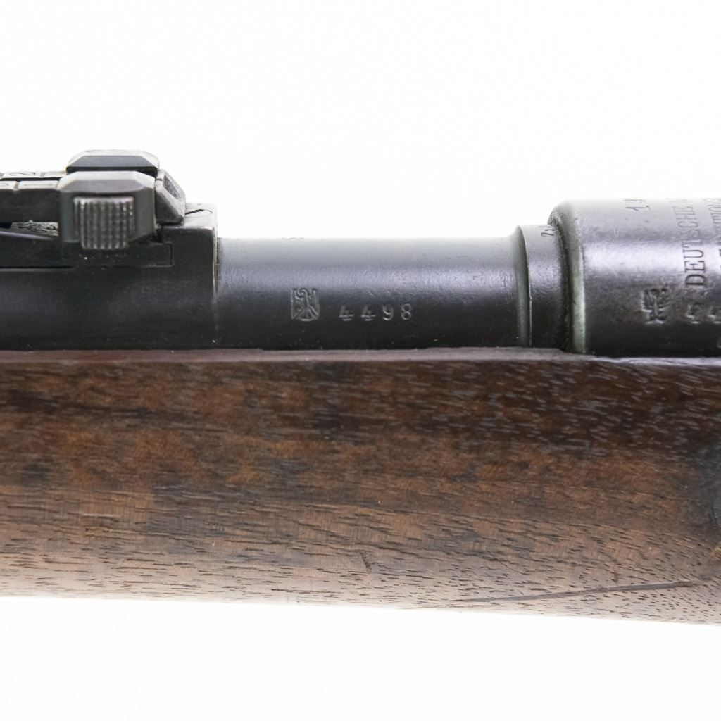 WWI 1915, 1920 REWORK Deutsche Waffen GEW98 8mm Rifle in good condition with wear. The bore has rifling and oxidation. Missing front sight blade and rear sling loop. Several German eagles and crowns proof-marks. Dual date stamps (1915,1920). Bolt, receiver, barrel, trigger-guard, magazine floor and rear sight all have matching numbers. MFG 1915 C&R Eligible S/N:4498