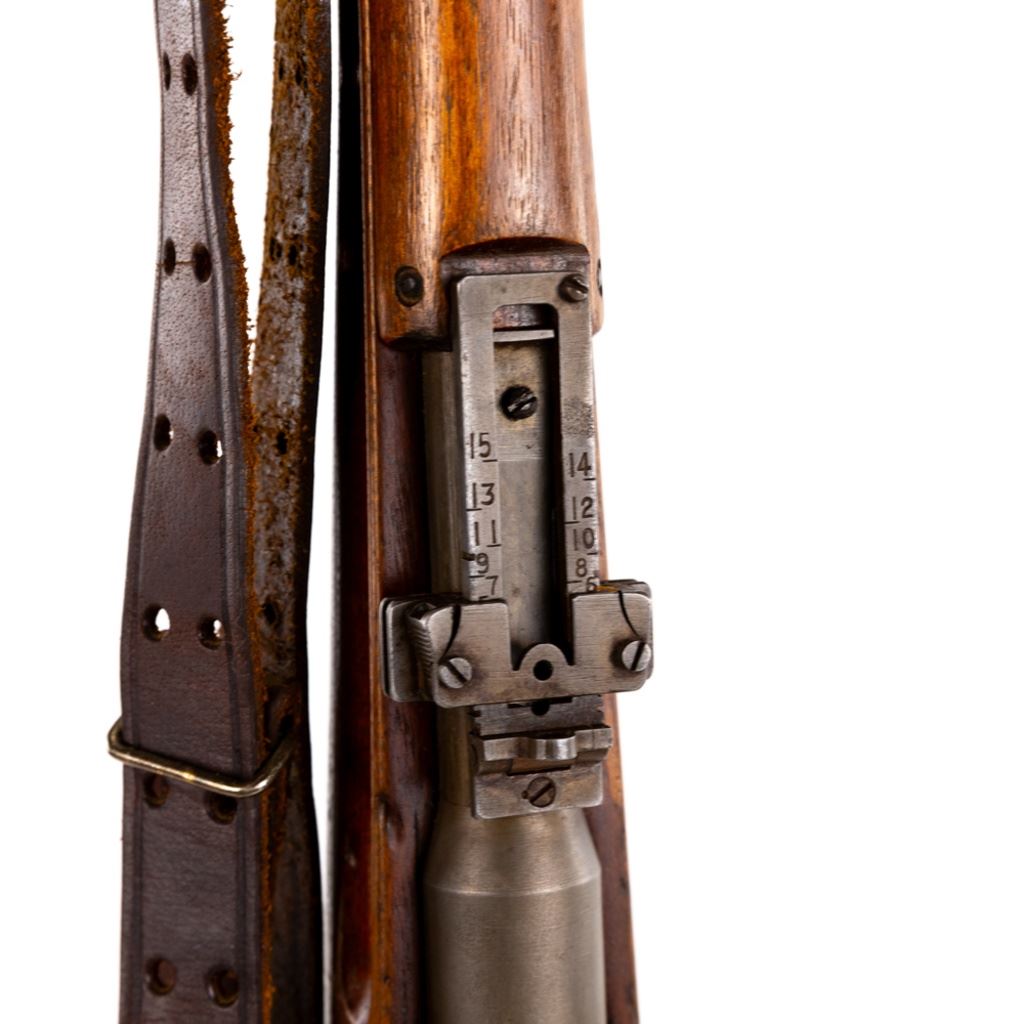 Arisaka Type99 7.7Jap 26" Rifle in very good condition with wear. The bore is sharp with light frosting. The mum has been ground. Comes with aircraft sights (missing wings) and a leather sling. C&R Eligible S/N:38347