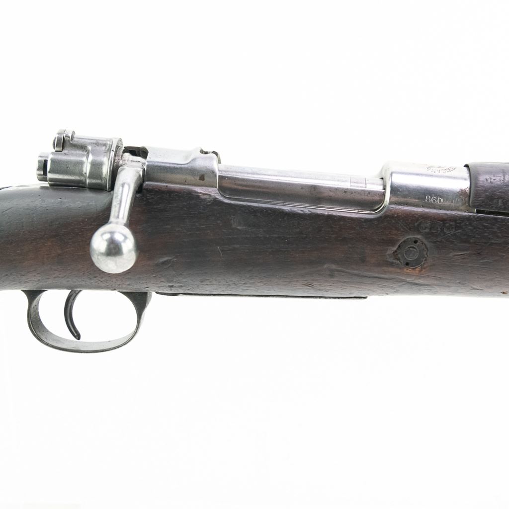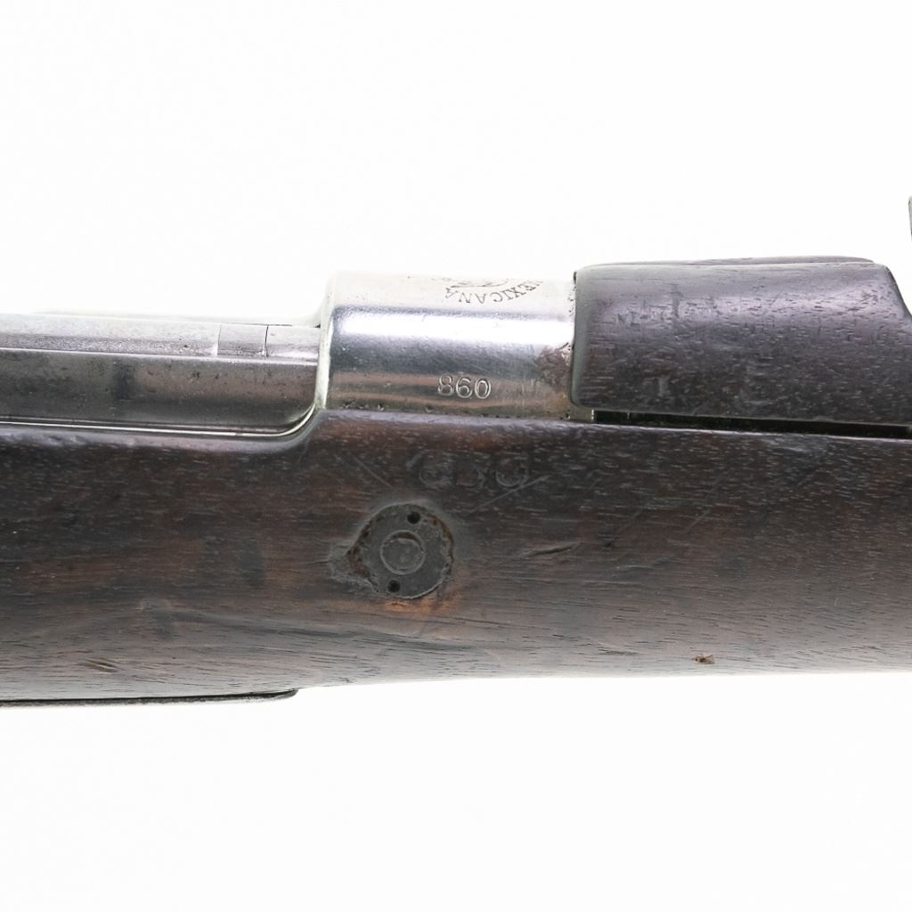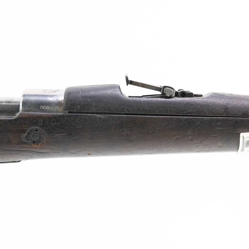 Mexican FN Mauser 7mm Rifle in good condition with wear. The bore is sharp with freckling. Most of the metal is in the white. C&R Eligible S/N:860