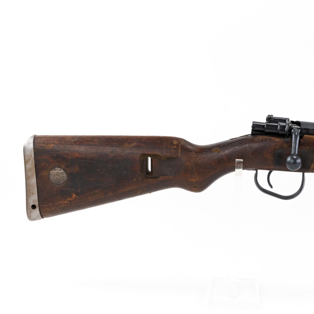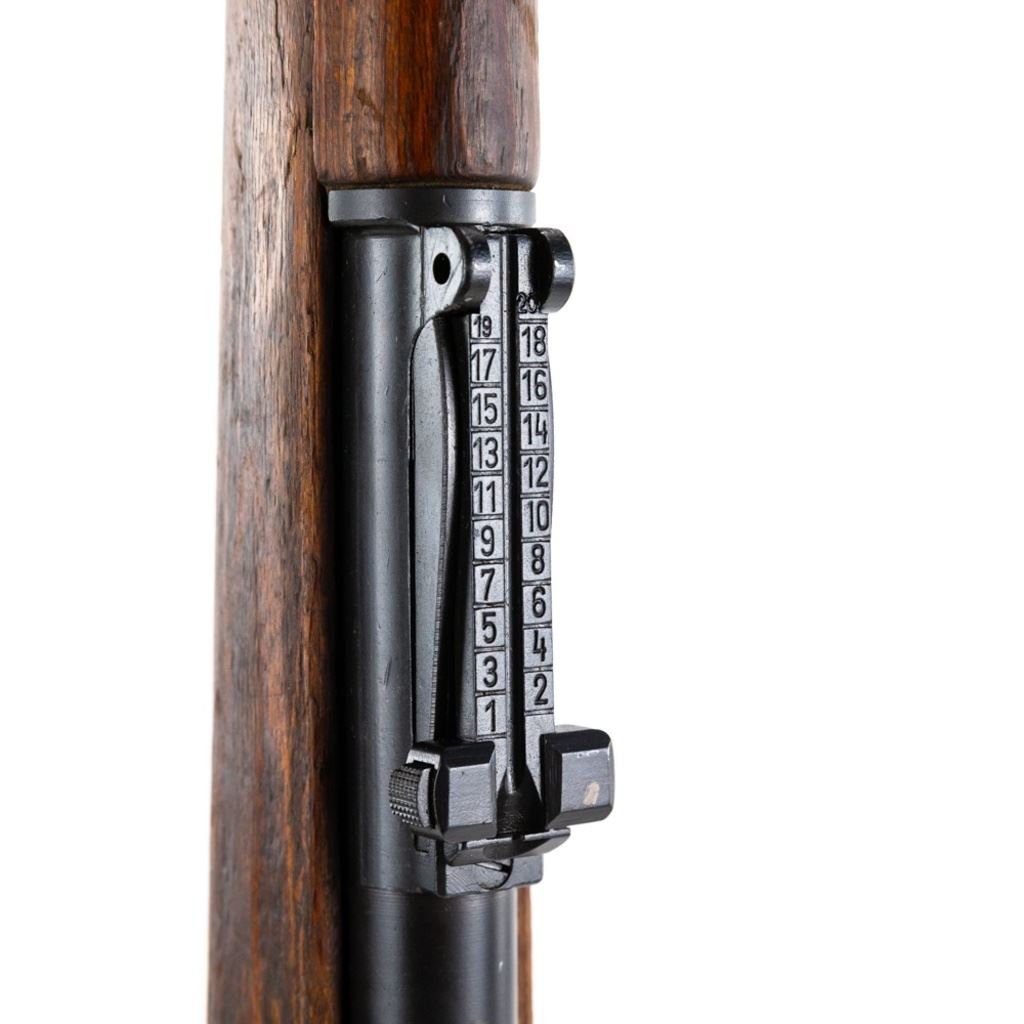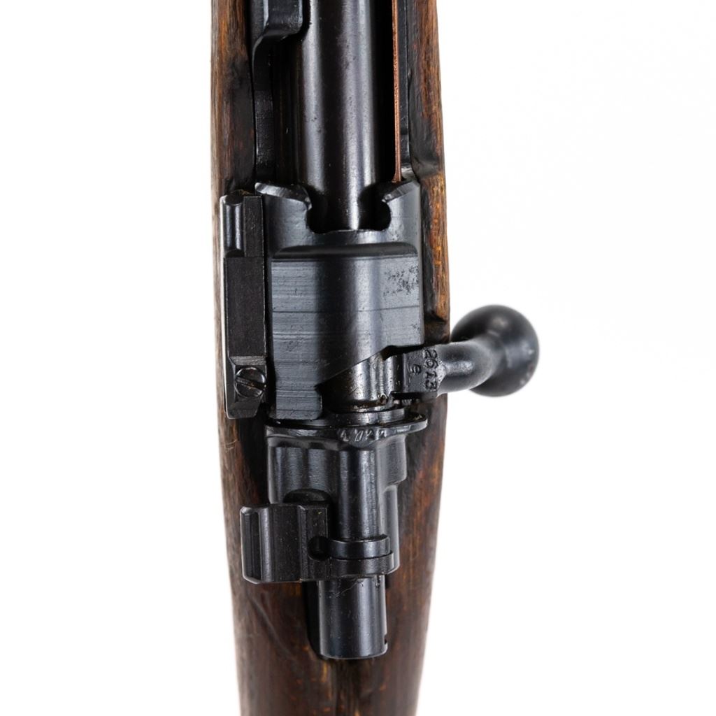 RARE!! Waffenwerke Brunn Brno swp45 M98 8mm Rifle in very good condition with some wear and oxidation. The bore is good with light frosting. This is arguably one of the rarest late war K98 variations - an SWP 45 coded rifle, made in the closing days of WWII at the Czech Waffenfabric Brunn arsenal which produced K98s for the Wermacht towards the end of the war. There were two late war variants made - one with a sheet metal rear sight and one with an adjustable rear sight. This is an adjustable rear sight variant and is actually the rarer of the two. Most of these had some sort of post WWII usage with Czechoslovakian forces or Israeli forces. Interesting Ethiopian medallion embedded in the rear stock. C&R Eligible S/N:3395