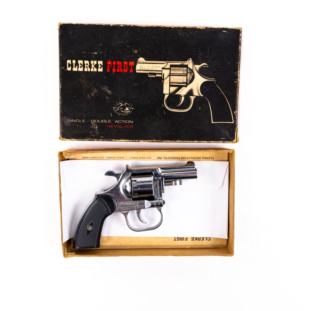 Clerke 1st 22lr Revolver in excellent condition with the original box and manual. S/N:231909 NOTES AUCTIONEER: CANNOT SELL TO ILLINOIS RESIDENTS!